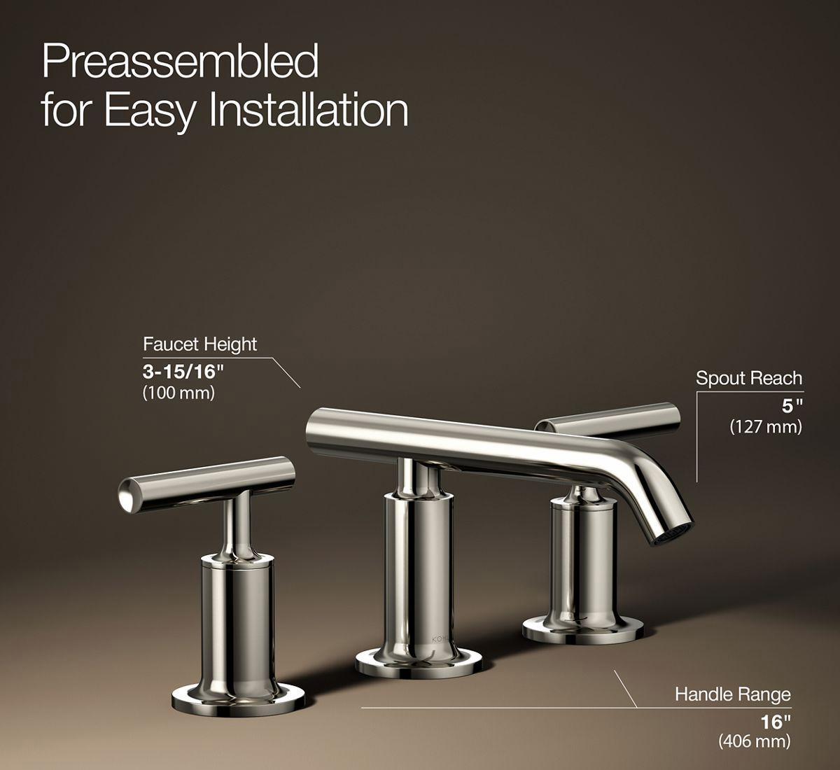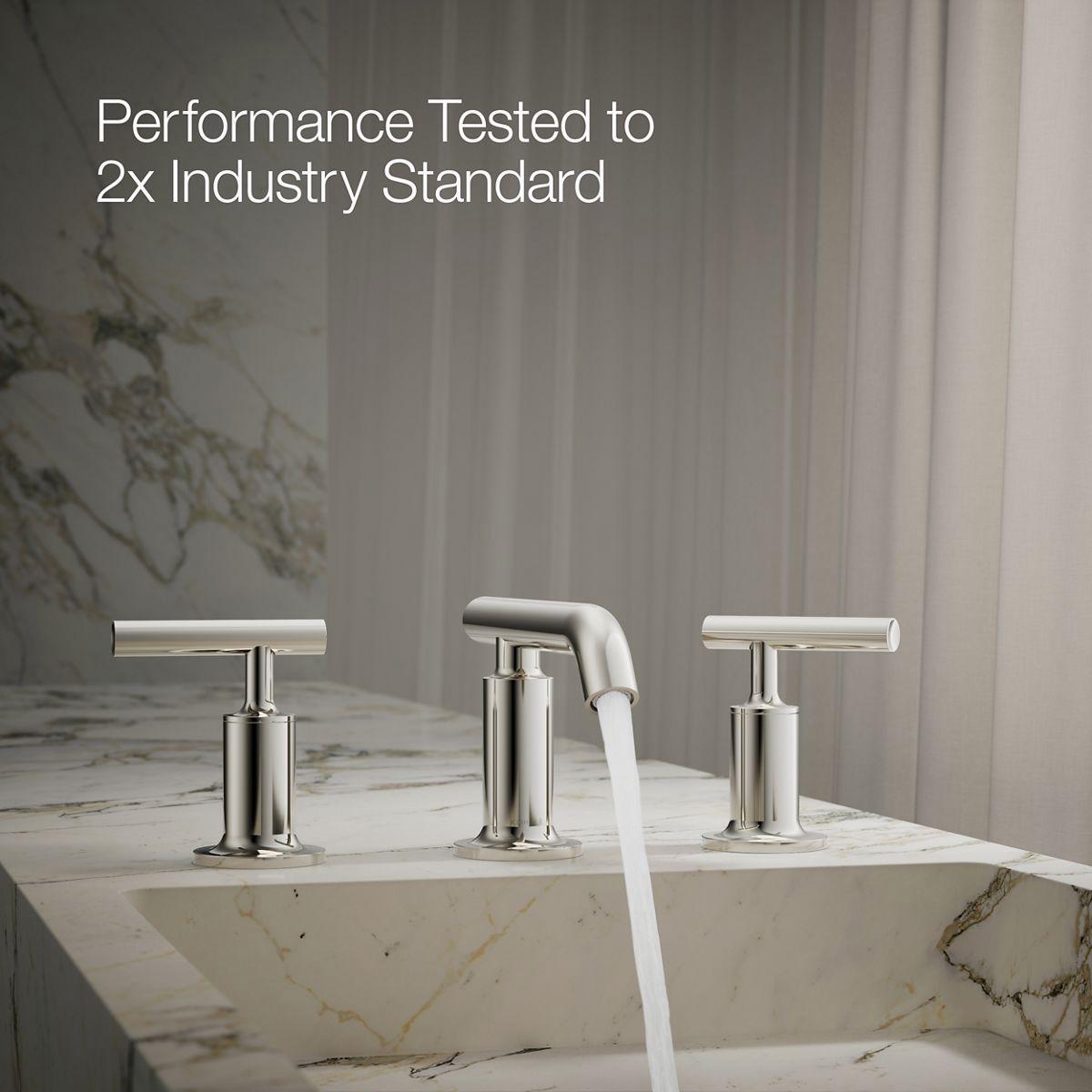 Combining architectural forms with sensual lines, Purist faucets and accessories bring a touch of modern elegance to your bathroom. This sink faucet exemplifies the Purist collection's understated style, with its low spout and lever handles. Easy-to-install and leak-free UltraGlide(TM) valves provide reliable performance and durability. And the spout features laminar flow, which helps conserve water while preventing splashing.