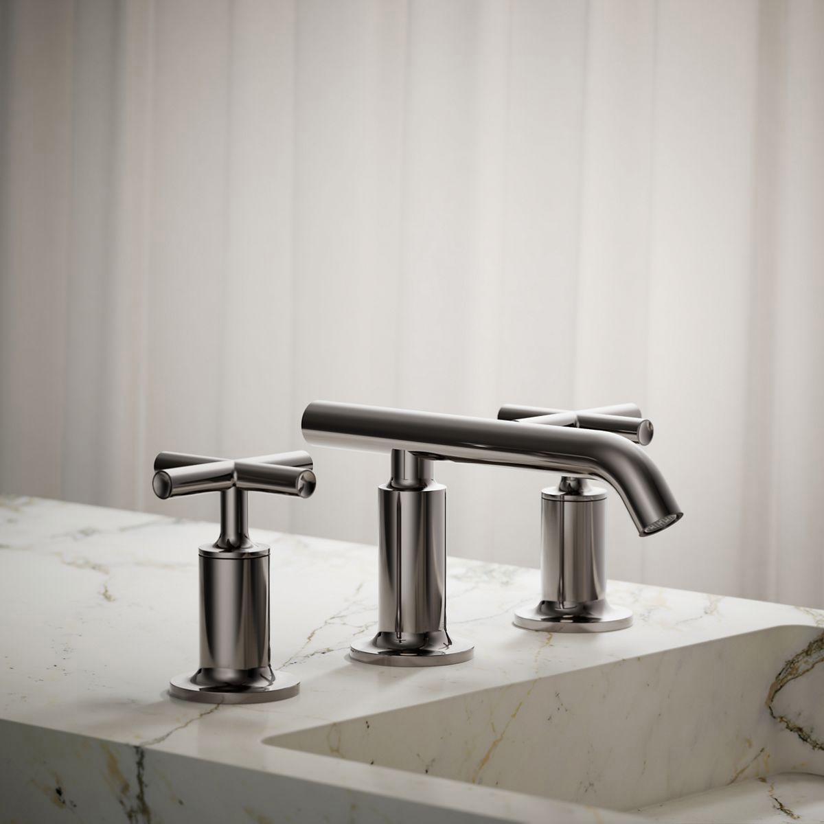 Combining architectural forms with sensual design lines, Purist faucets and accessories bring a touch of modern elegance to your bathroom. This sink faucet exemplifies the Purist collection's understated style, with its low spout and cross handles. Easy-to-install and leak-free UltraGlide(TM) valves provide reliable performance and durability. And the spout features laminar flow, which helps conserve water while preventing splashing.