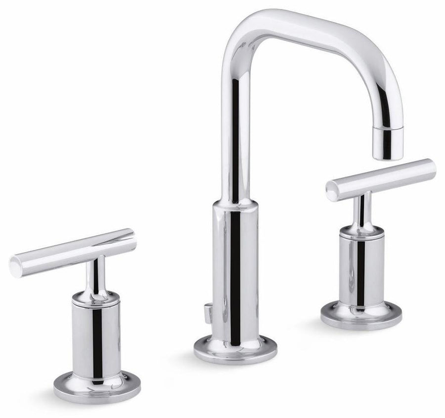 Combining architectural forms with sensual design lines, Purist faucets and accessories bring a touch of modern elegance to your bathroom. This sink faucet exemplifies the Purist collection's understated style, with its low gooseneck spout and lever handles. Easy-to-install and leak-free UltraGlide™ valves provide reliable performance and durability. And the spout features laminar flow, which helps conserve water while preventing splashing.
