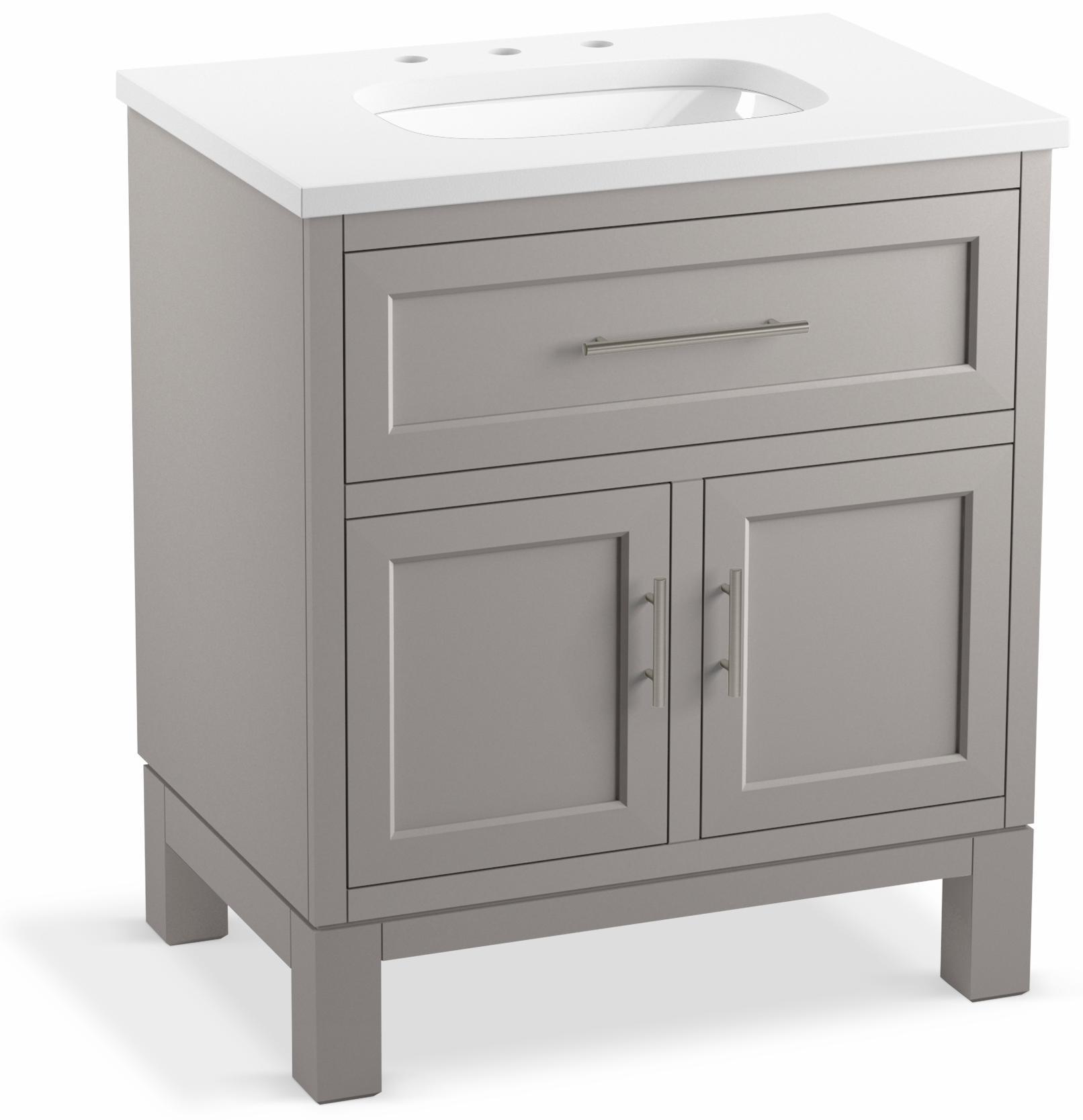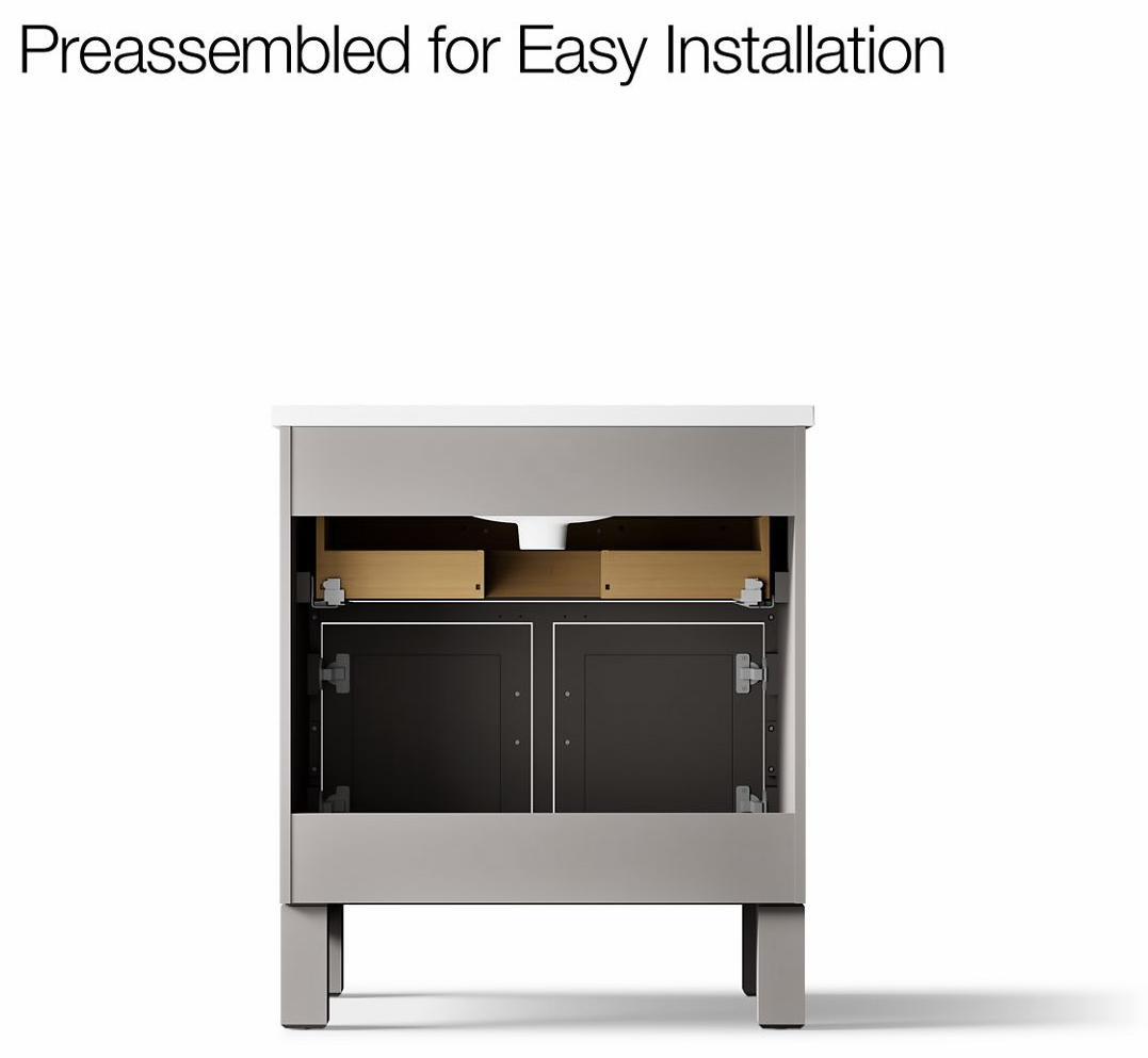 - Set includes cabinet, precut quartz vanity top, sink, cabinet hardware