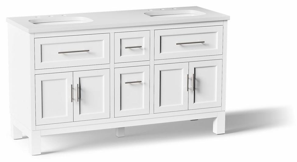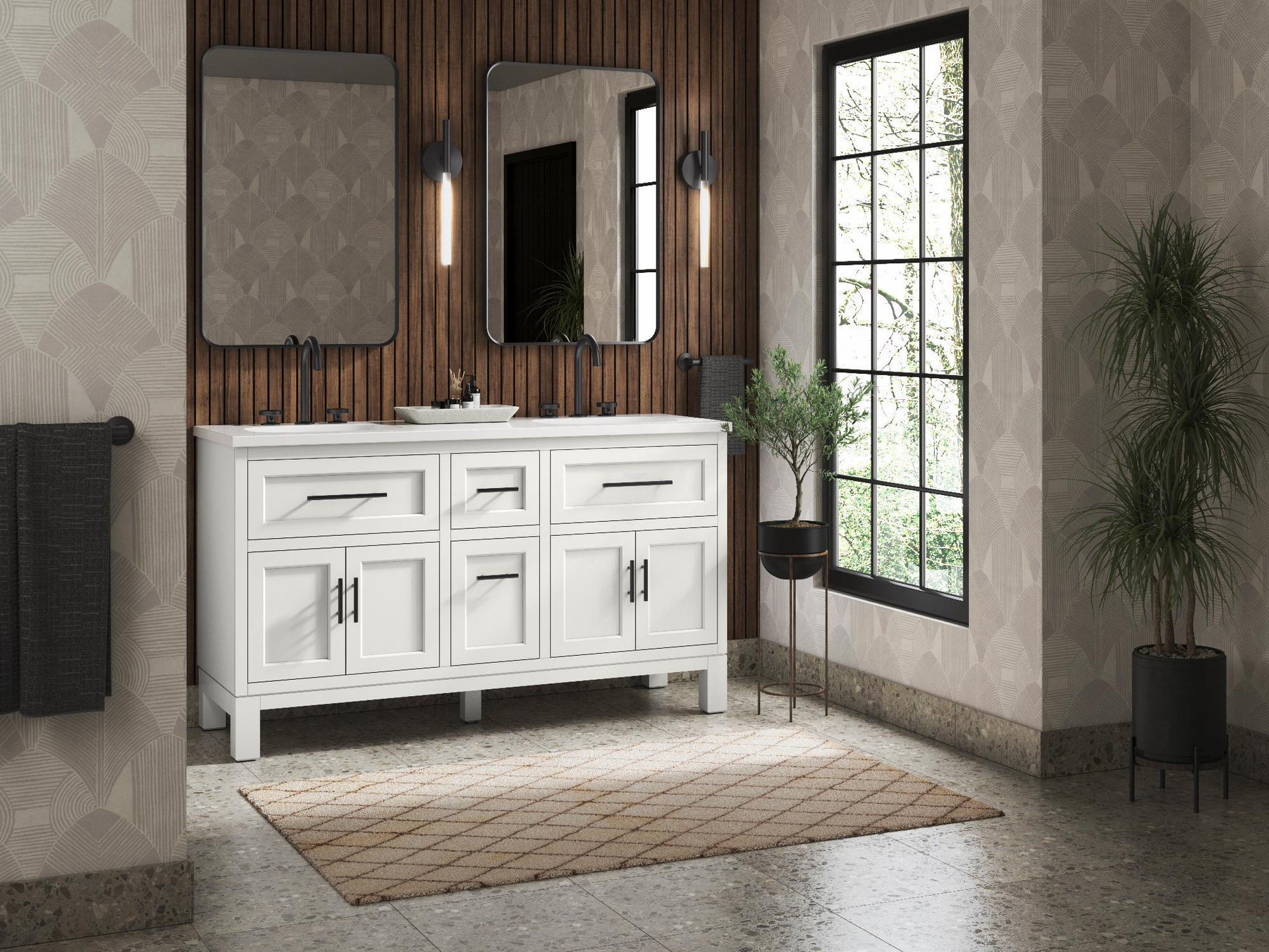 - Pure White (PWH) quartz vanity top adds beauty and long-lasting durability