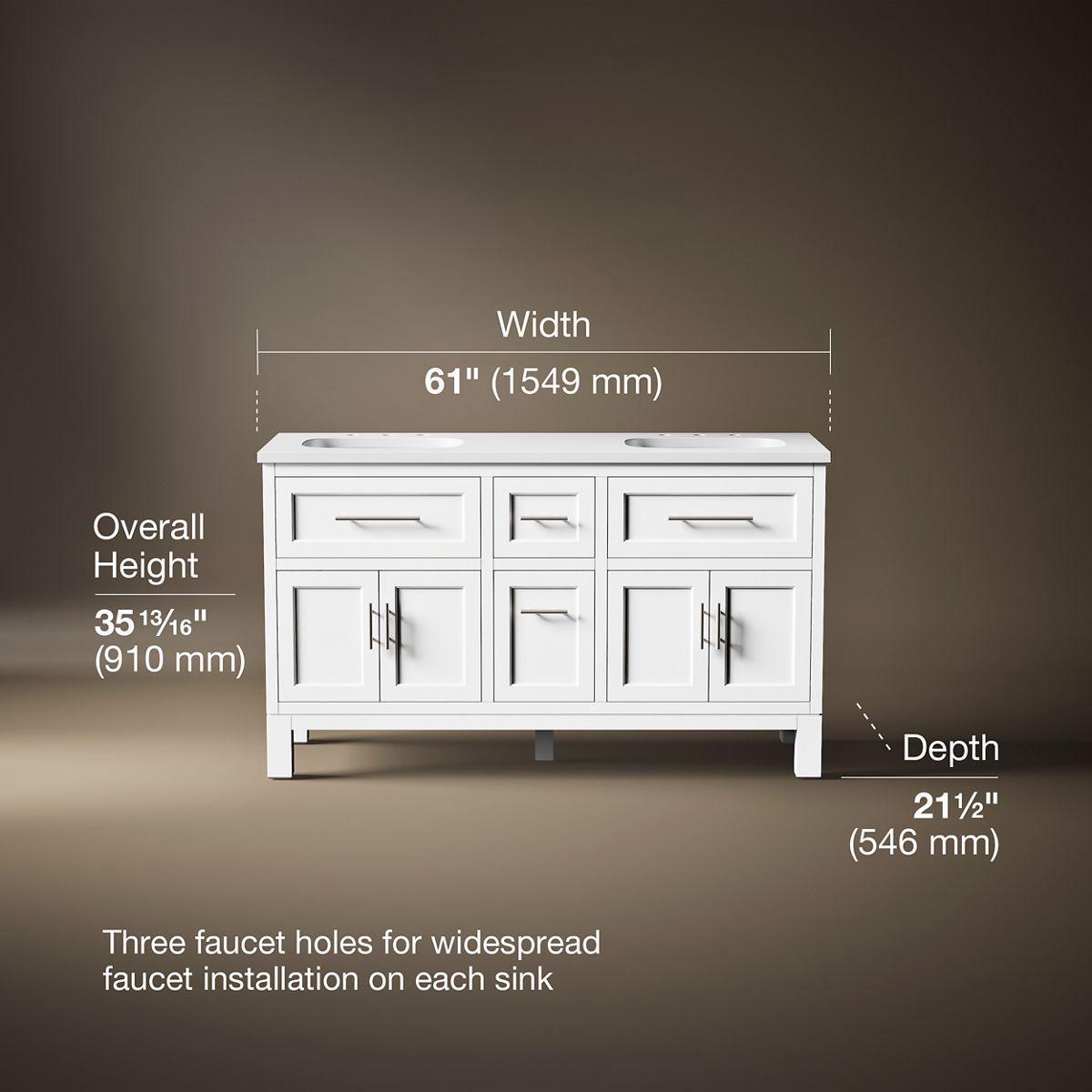 - Vanity top has 8" (203 mm) widespread faucet holes; requires deck-mount faucets (sold separately)