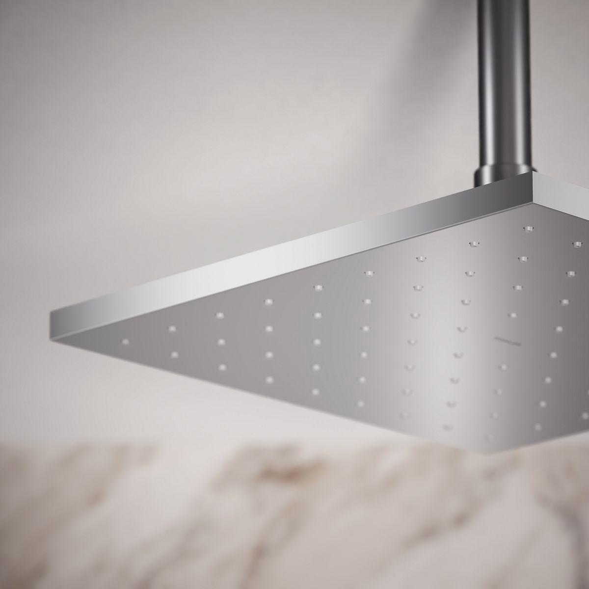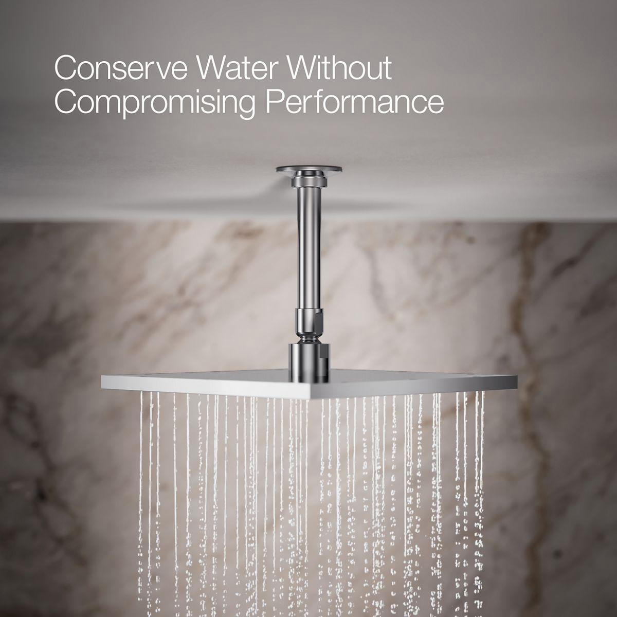 Enjoy a shower that simulates the soaking deluge of a warm summer downpour. This contemporary-style rainhead features innovative Katalyst air-induction technology, which efficiently mixes air and water to produce large water droplets and deliver a powerful, thoroughly drenching overhead shower experience. Its clean good looks and durable finish coordinate with many other KOHLER faucets and accessories.