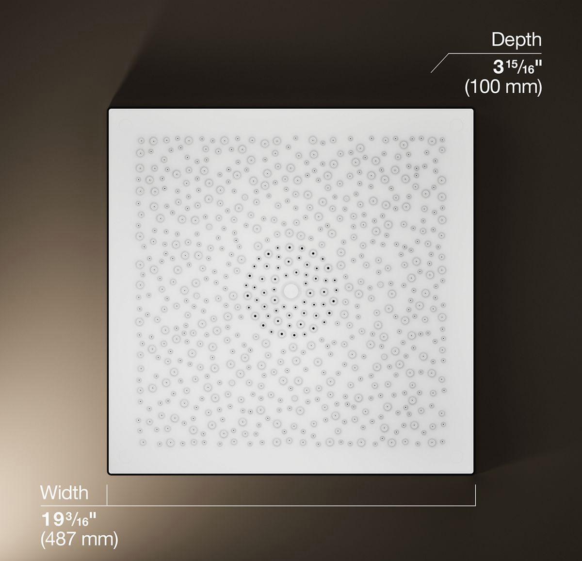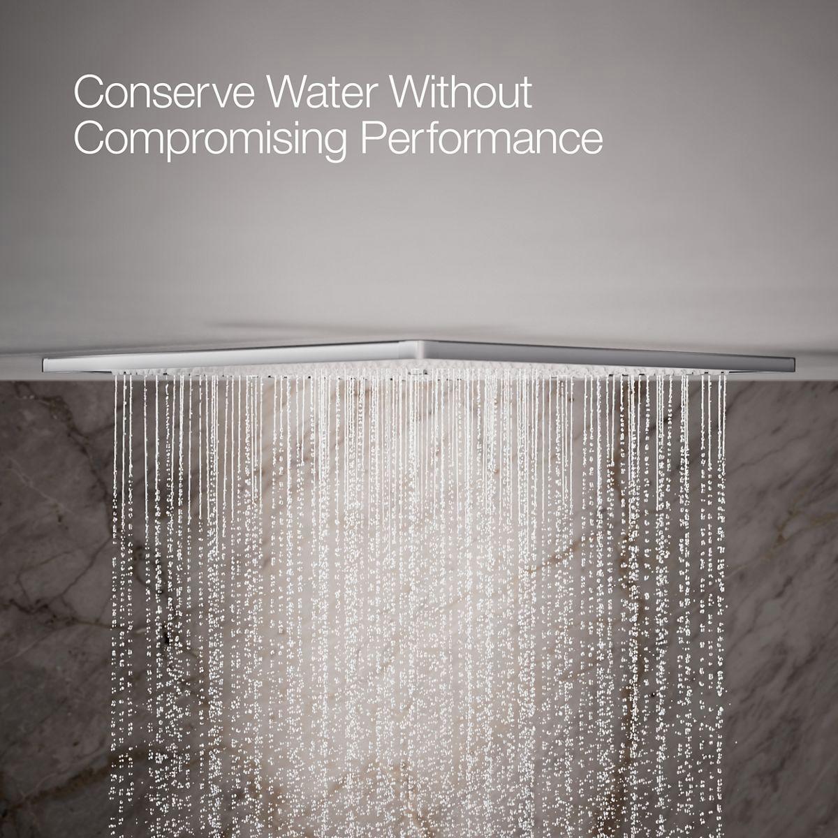 Experience the gentle buildup of a warm summer rainstorm in your shower. The Real Rain overhead panel is designed with a water reservoir that relies on gravity to shape individual drops that replicate rainfall. When the reservoir fills, water spills into the remainder of the showerhead, covering over 605 nozzles, and raindrops begin to fall softly and slowly then grow in strength and speed until the shower feels, sounds, and looks like a warm summer rain. Push a button and the Deluge feature releases a reservoir of water in one powerful instant to simulate an energetic burst of heavy rain.