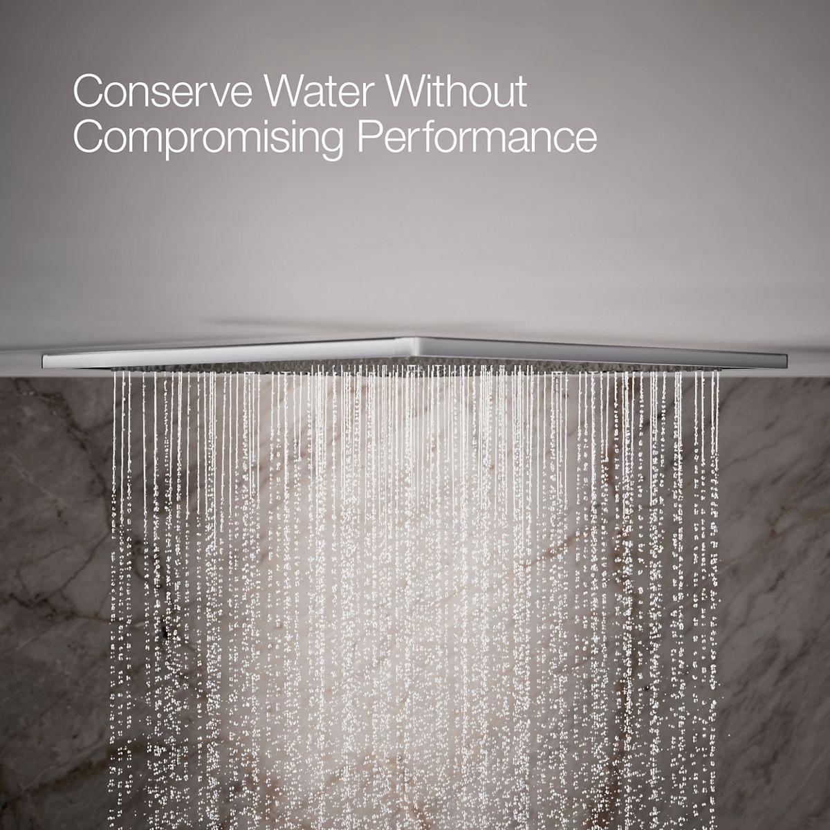 Experience the gentle buildup of a warm summer rainstorm in your shower. The Real Rain overhead panel is designed with a water reservoir that relies on gravity to shape individual drops that replicate rainfall. When the reservoir fills, water spills into the remainder of the showerhead, covering over 775 nozzles, and raindrops begin to fall softly and slowly then grow in strength and speed until the shower feels, sounds, and looks like a warm summer rain. Push a button and the Deluge feature releases a reservoir of water in one powerful instant to simulate an energetic burst of heavy rain.
