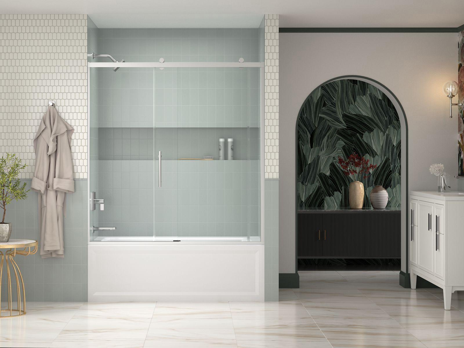 With a sleek, minimalist design, oversized rollers for best-in-class sliding action, and low-maintenance CleanCoat+ glass treatment, the KOHLER Rely bath door combines bold style with delightful functionality. Because Rely can be installed to open from the left or right, it fits easily into your bathroom layout, and 3/8" out-of-plumb adjustability on each side makes the Rely bath door easy to install. A range of sizes, glass types, and finishes means there’s a Rely bath door waiting for you.