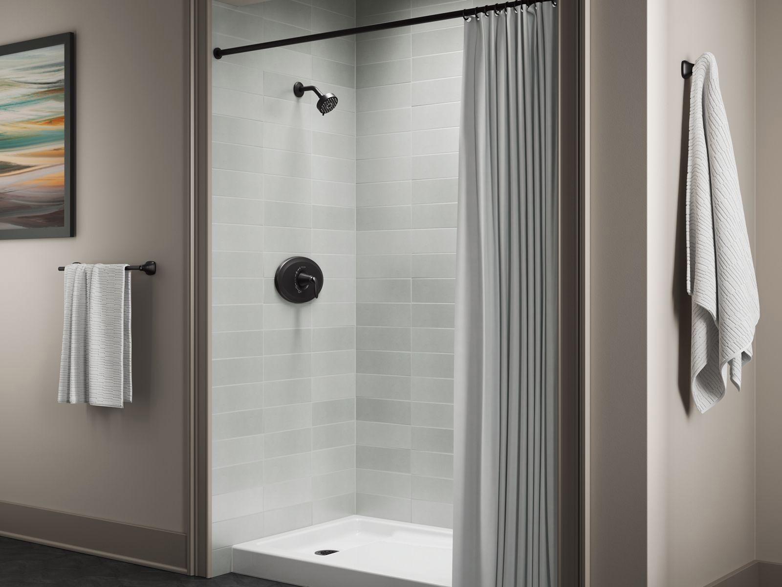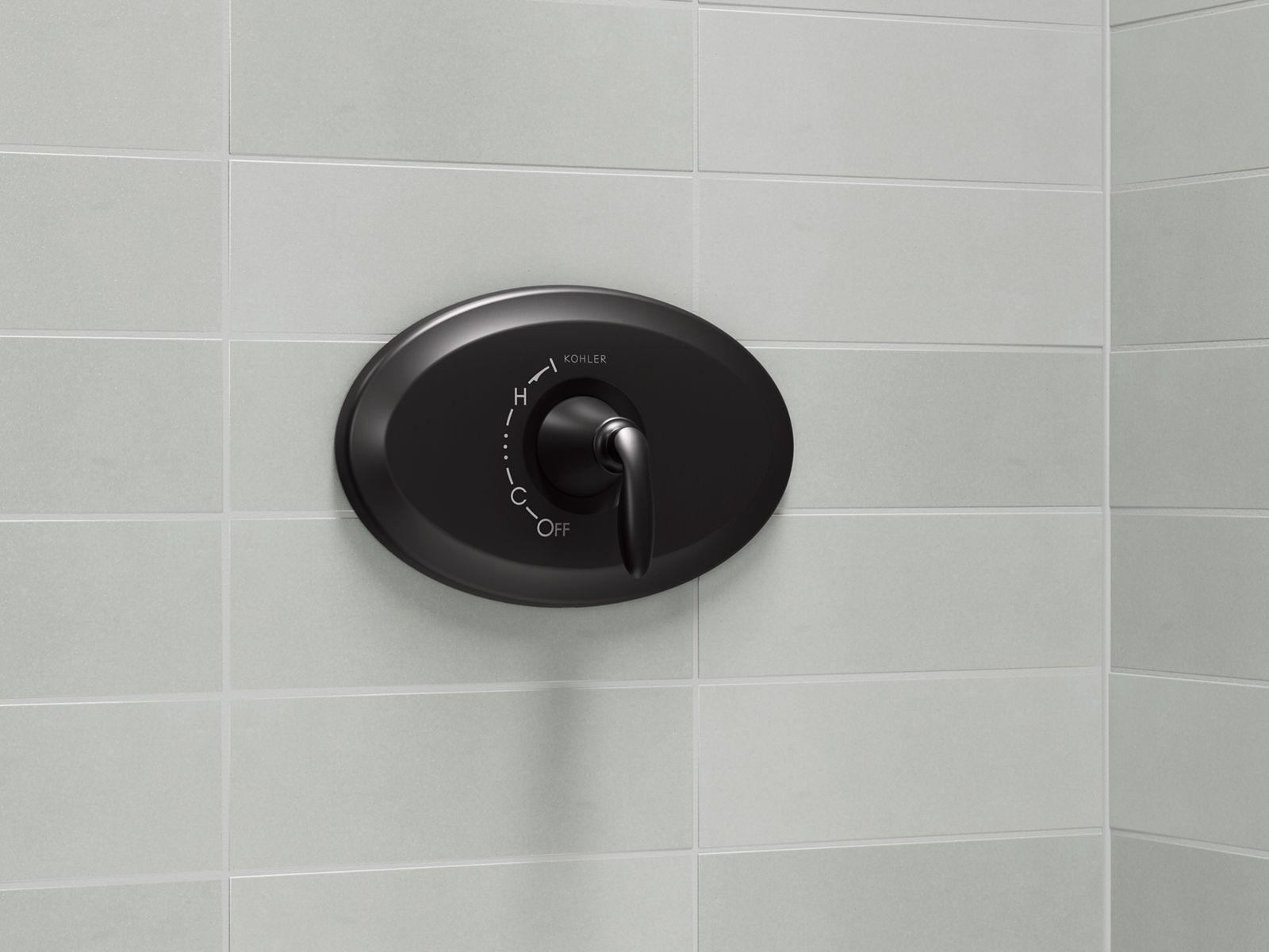 Easily cover the holes from your two-handle shower valving conversion with our Remodel Rite-Temp shower trim kit. The escutcheon plate easily covers holes from your outdated two-handle shower trim installation, and the single-lever handle easily rotates for on/off activation and temperature control. A three-function showerhead completes the set, and with clean, attractive lines, the plate, handle, and showerhead will fit in with any bathroom décor. At Kohler, we make it our business to help you create the bathroom space of your dreams.