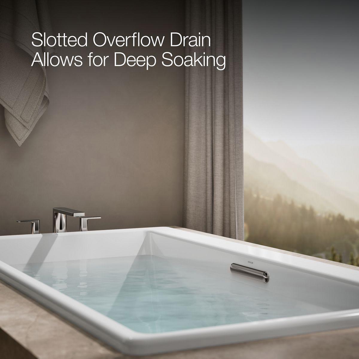 - Slotted overflow allows for deep soaking.
