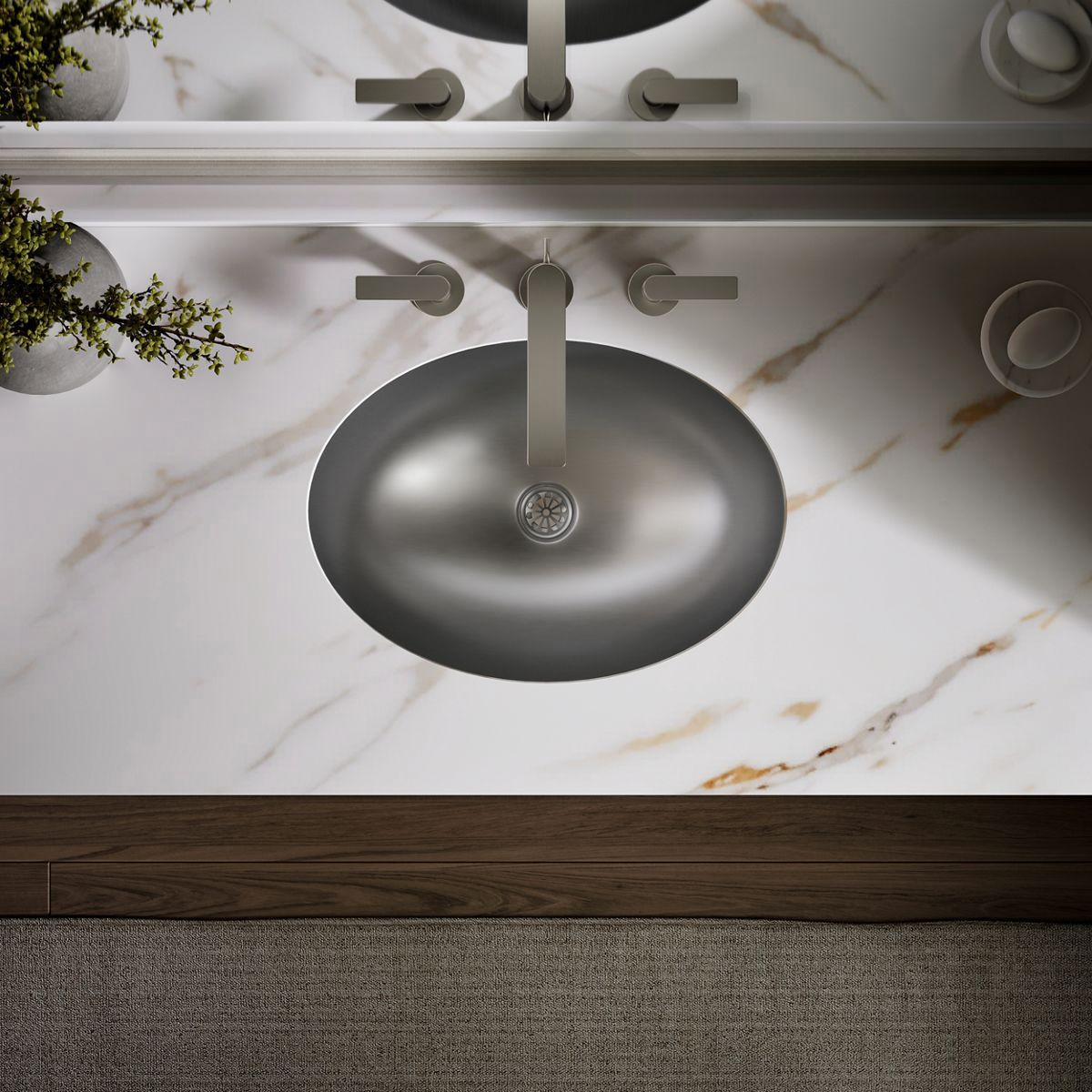 - Oval basin with Satin finish.