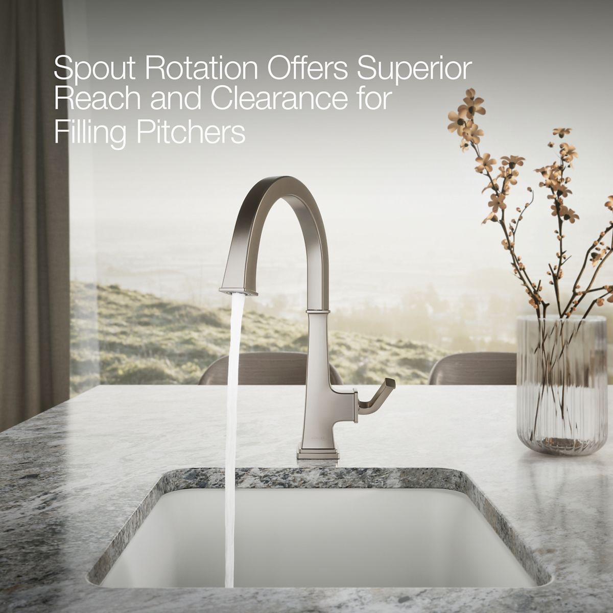 - High-arch swing spout with 155˚ rotation offers superior clearance for filling pitchers, chilling bottles and cleanup.
