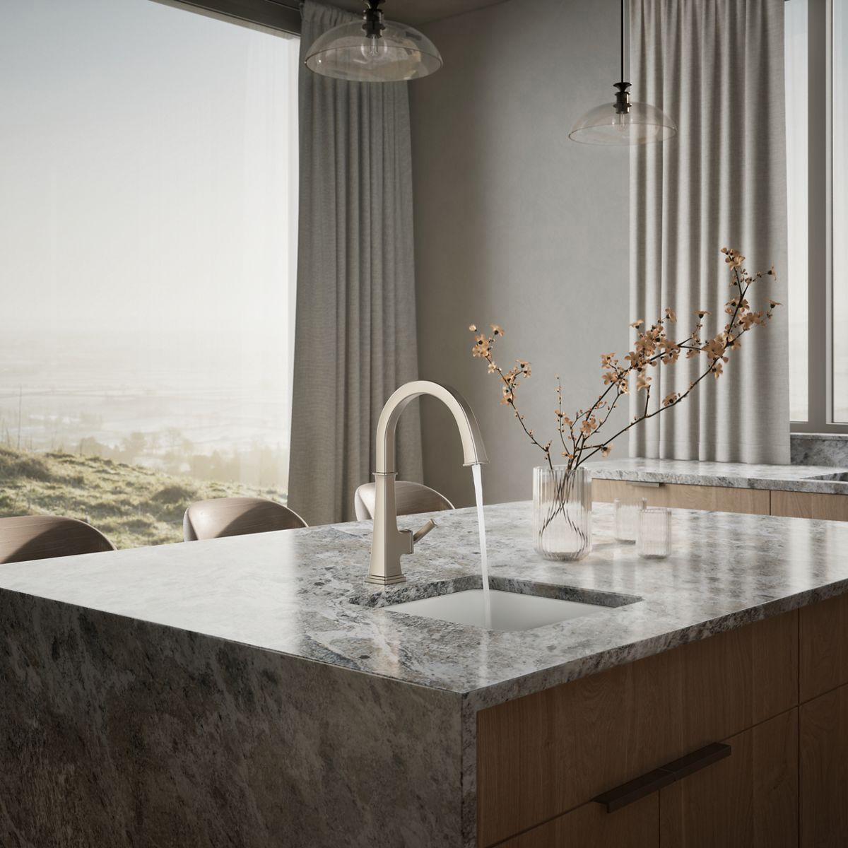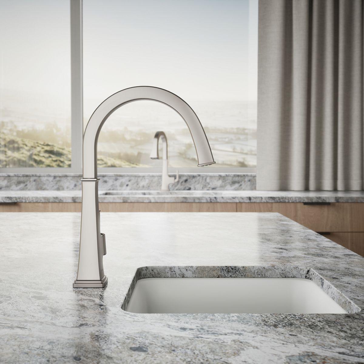 Inspired by the French and Spanish architecture of the historical American south, the Riff kitchen faucet collection offers a contemporary twist on traditional design. The distinctive, square lines will elevate your space with a timeless feel. High design paired with thoughtful functionality, the Riff collection is a true modern classic.