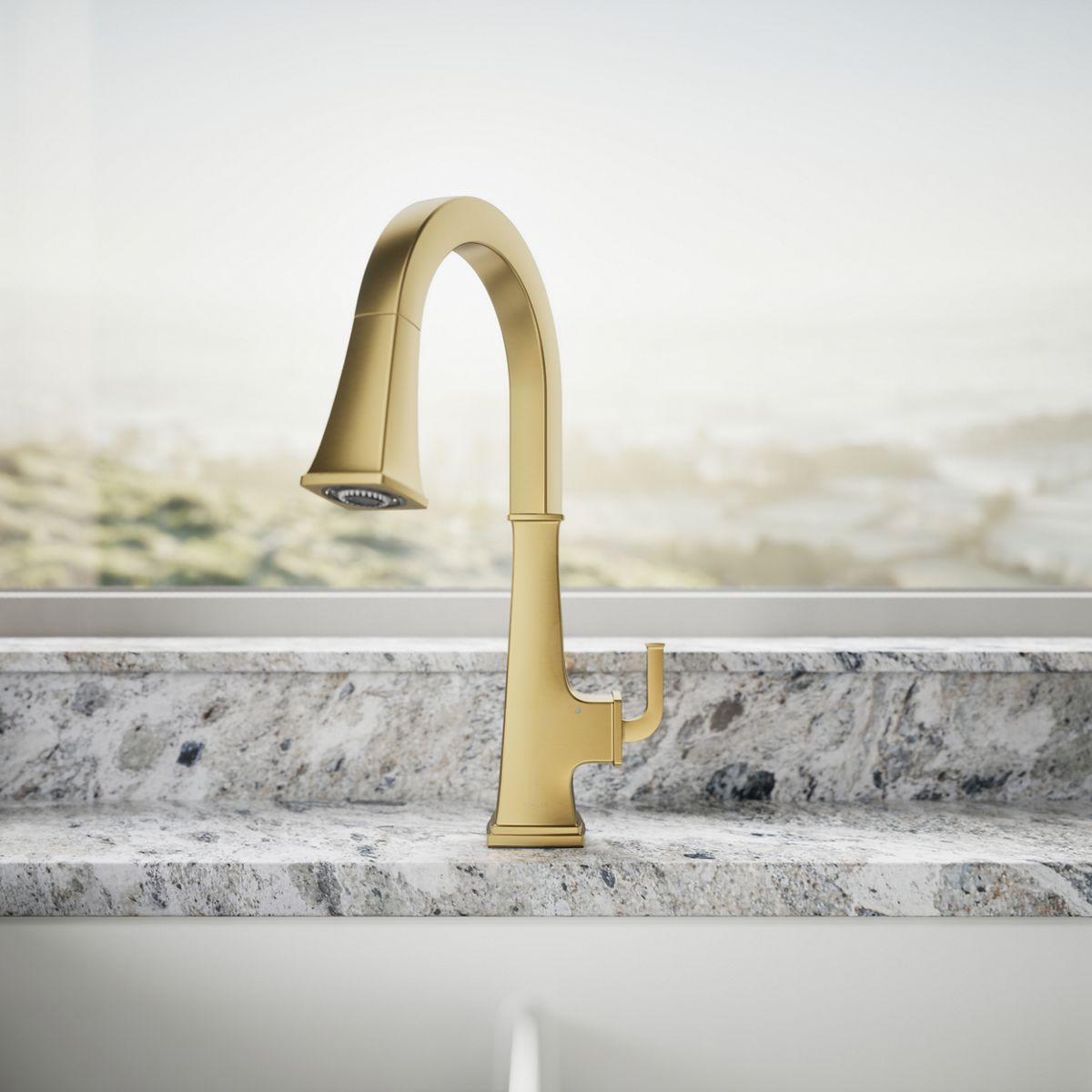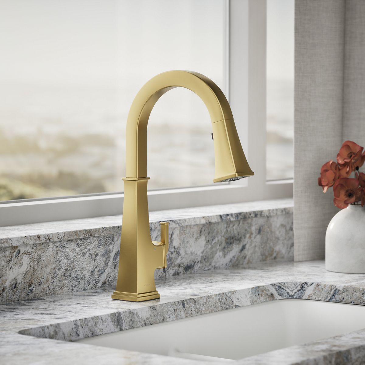 - Three-function pull-down sprayhead with touch control allows you to switch between aerated stream, Sweep® spray, and Boost technology