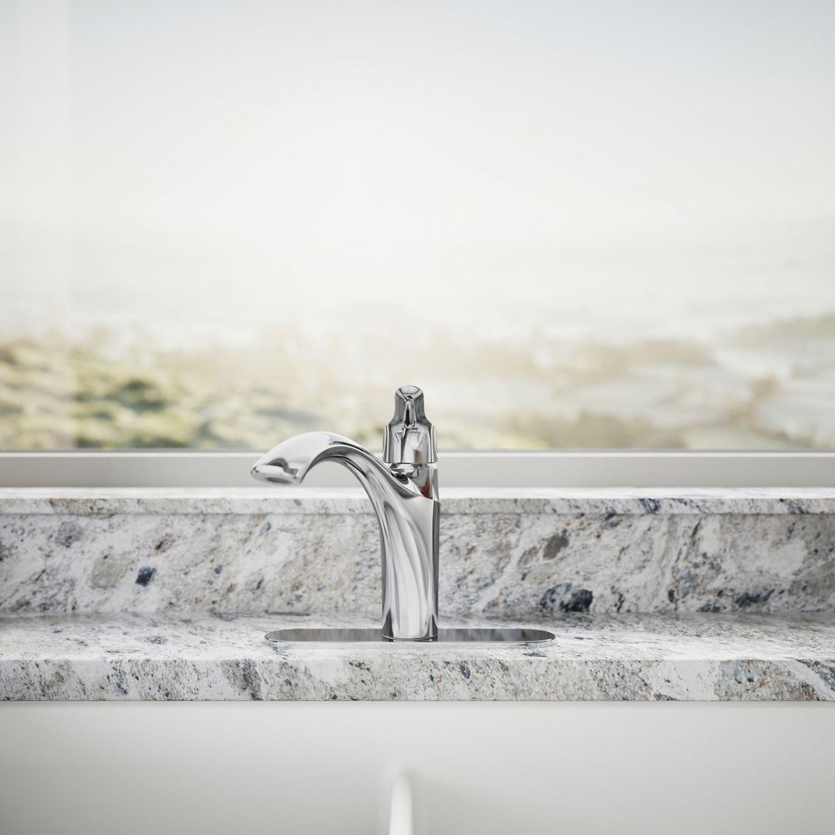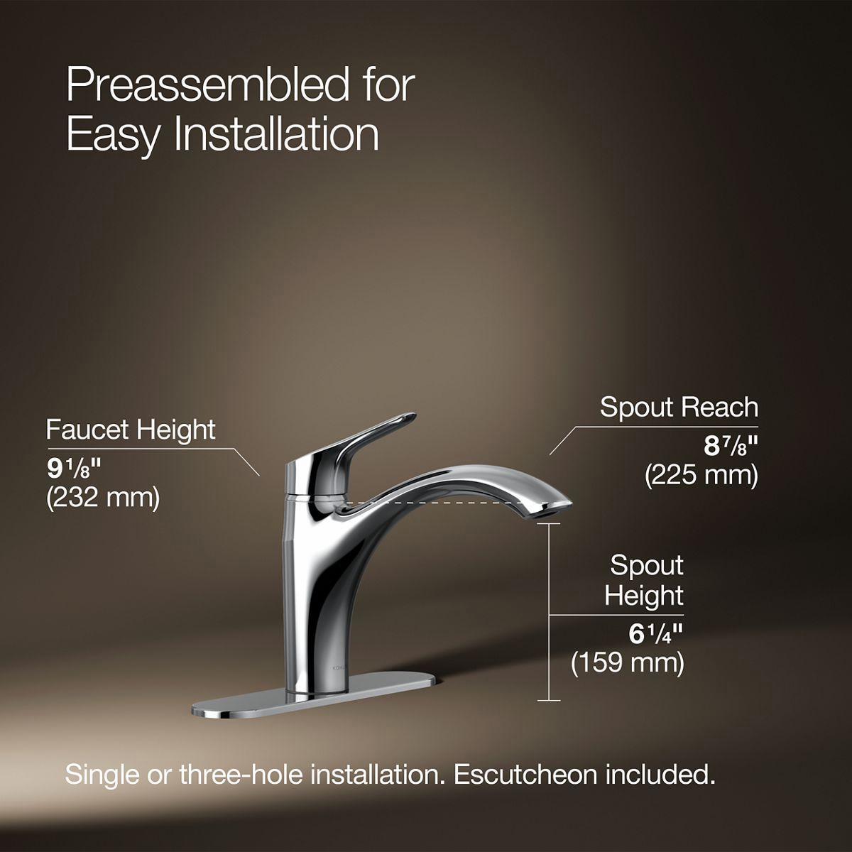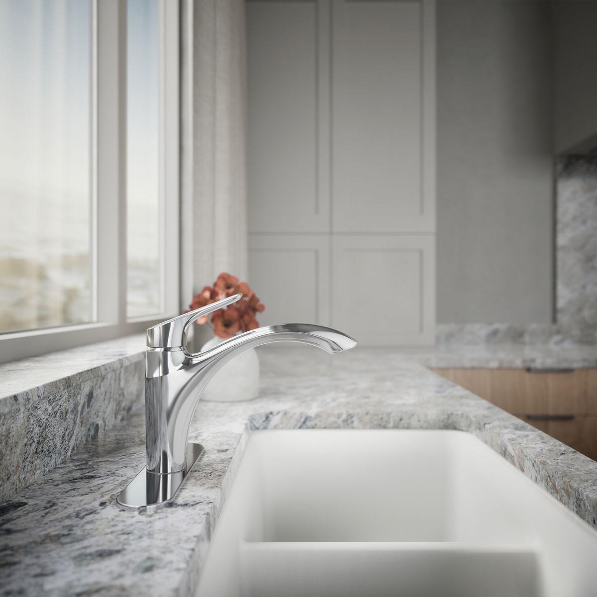 At home in classic or contemporary settings, this Rival kitchen sink faucet enhances any kitchen with style. With its graceful arch, the spout is designed to reach over pots and pans. An ergonomic single lever handle offers ease of use, allowing you to turn the water on and set the temperature in one motion.