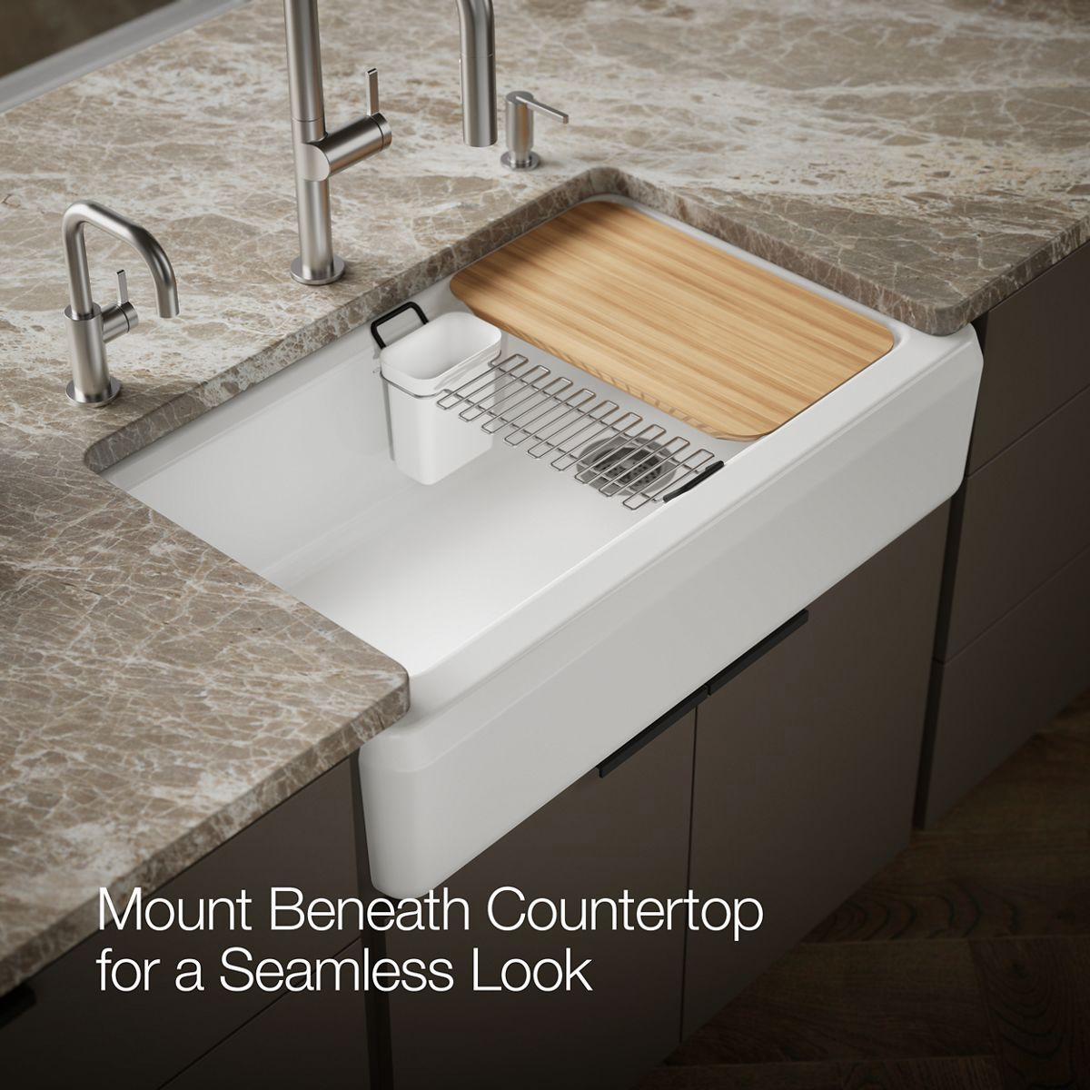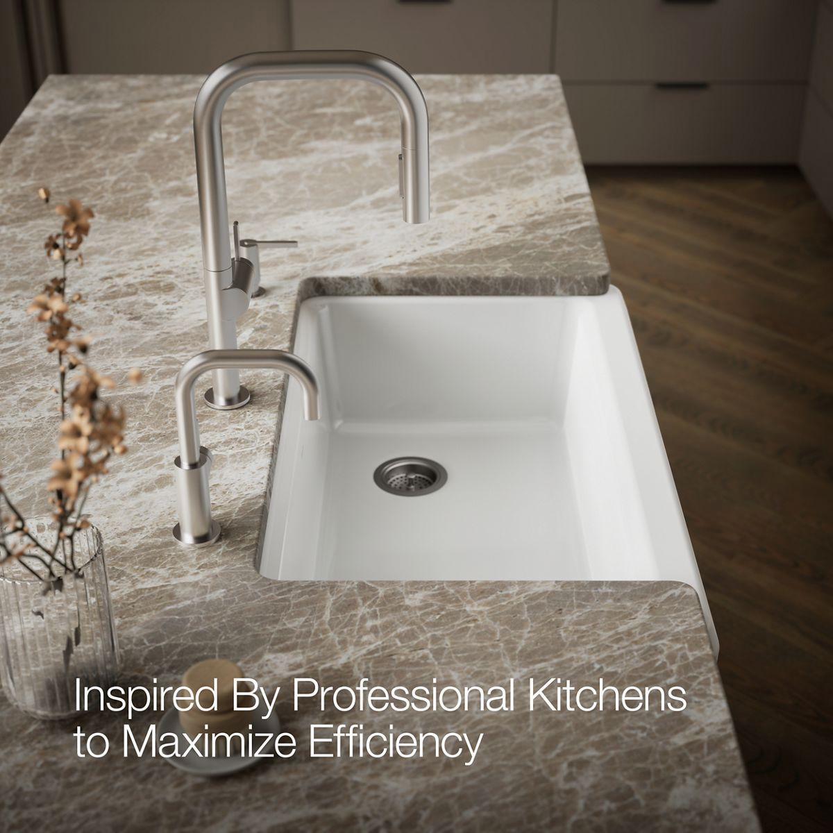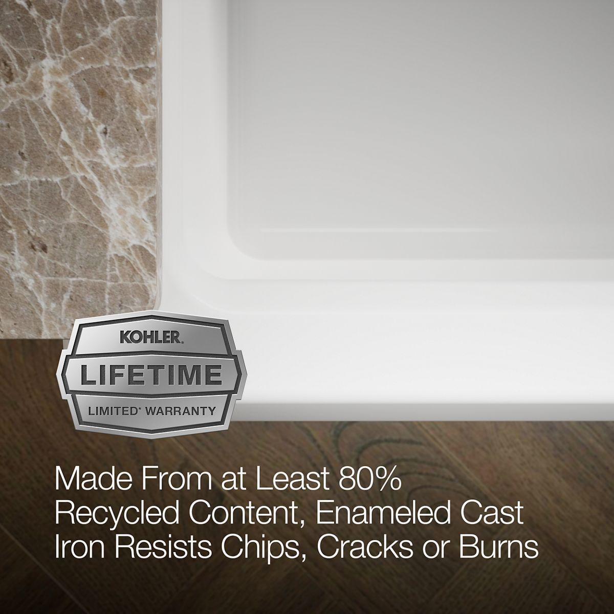 Inspired by professional chefs and designed around real-life routines, Riverby streamlines your kitchen tasks with accessories that make prepping, cooking, and cleaning a breeze. The understated beauty of this Riverby sink makes it an elegant and versatile addition to the kitchen. A single, large bowl provides ample space to soak and wash cookware, while a sloped basin to an offset drain minimizes water pooling. Crafted from enameled cast iron, this sink resists chipping, cracking, or burning for years of beauty and reliable performance.