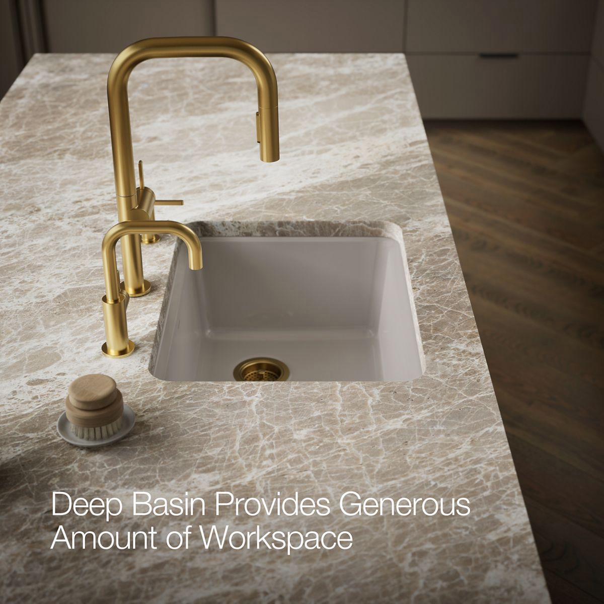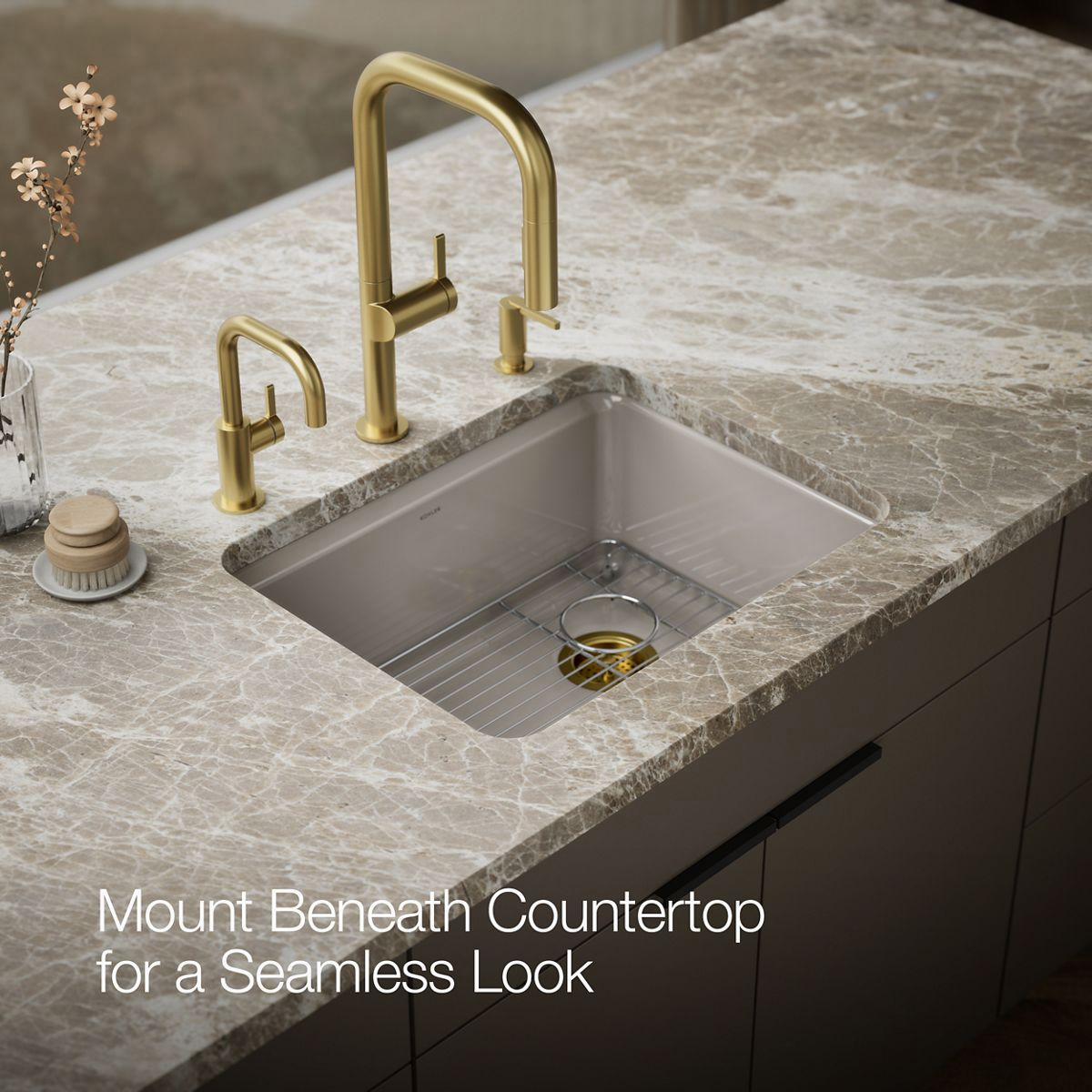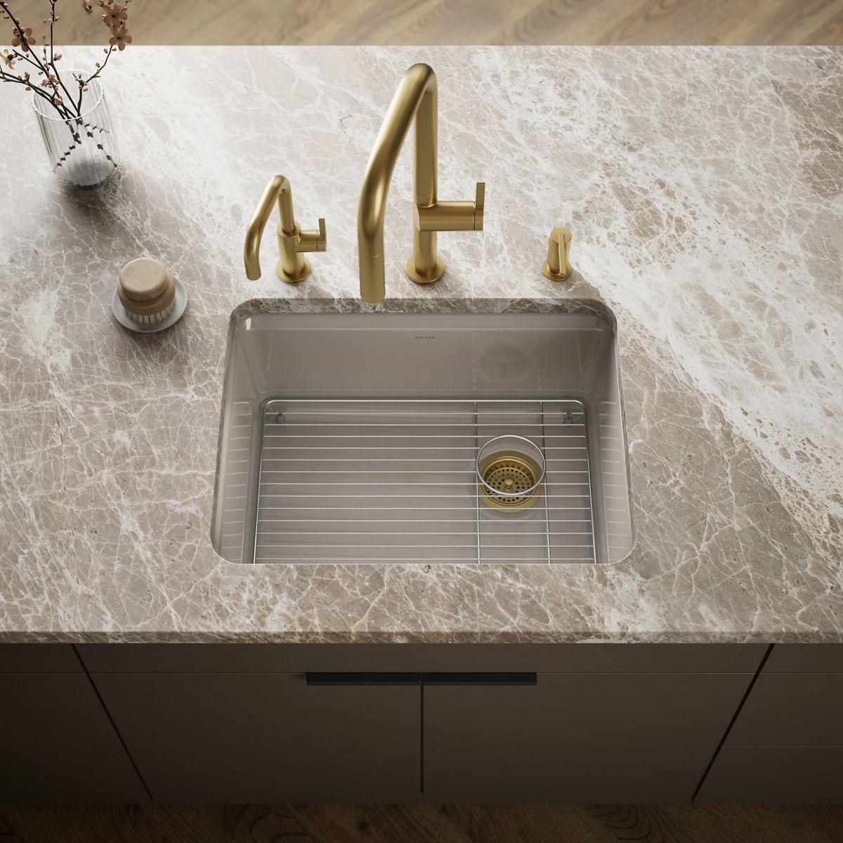 Sized to fit small spaces, the Riverby sink is an elegant and versatile addition to the kitchen as a primary, secondary, bar, or utility sink. A single-bowl provides ample space to soak and wash large items, while front and back beveled edges help keep water in the sink. A sloped base to a single offset drain minimizes water pooling. Crafted from enameled cast iron, this sink resists chipping, cracking, or burning for years of beauty and reliable performance. An included custom-fit sink rack also helps protect the sink surface from daily wear.