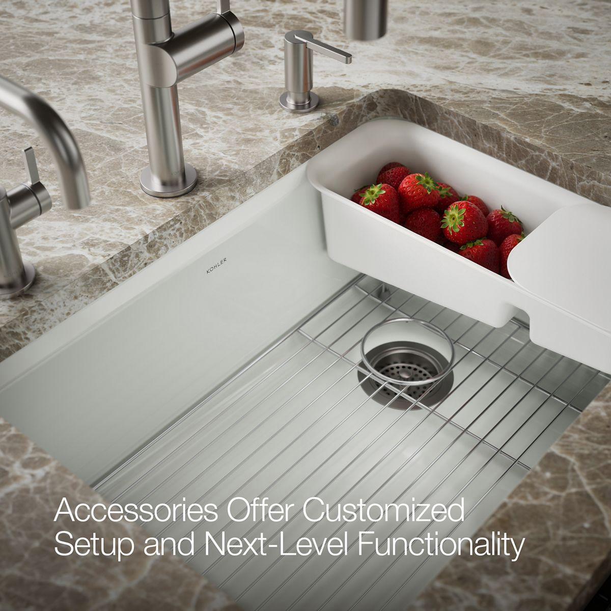 - Includes K-6239 colander with integral cutting board and K-9137 bottom sink rack.