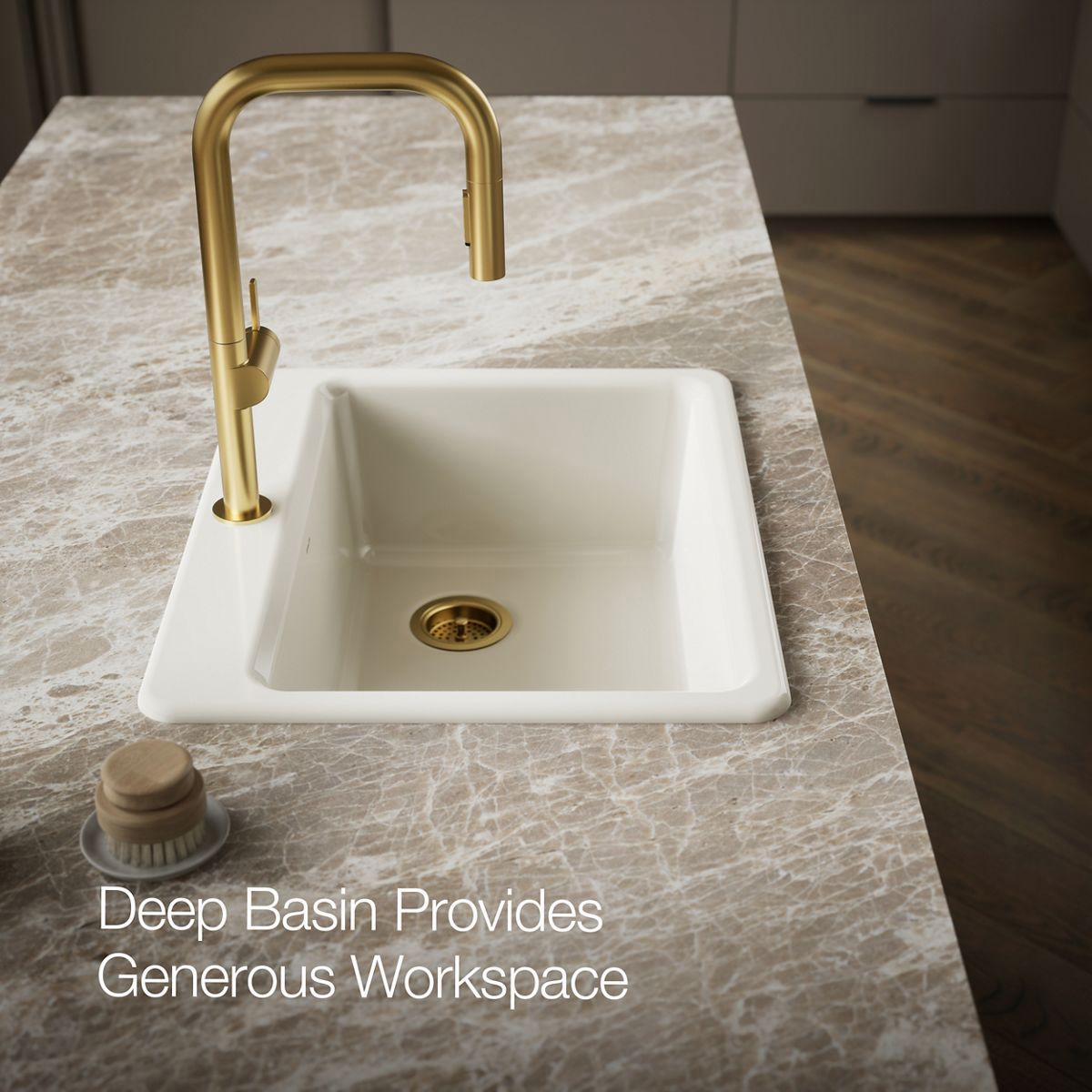 The understated beauty of this Riverby sink makes it an elegant and versatile addition to the kitchen. A single, large bowl provides ample space to soak and wash cookware, while a sloped base minimizes water pooling. Crafted from enameled cast iron, this sink resists chipping, cracking, or burning for years of beauty and reliable performance. It comes with a stainless-steel bottom sink rack.