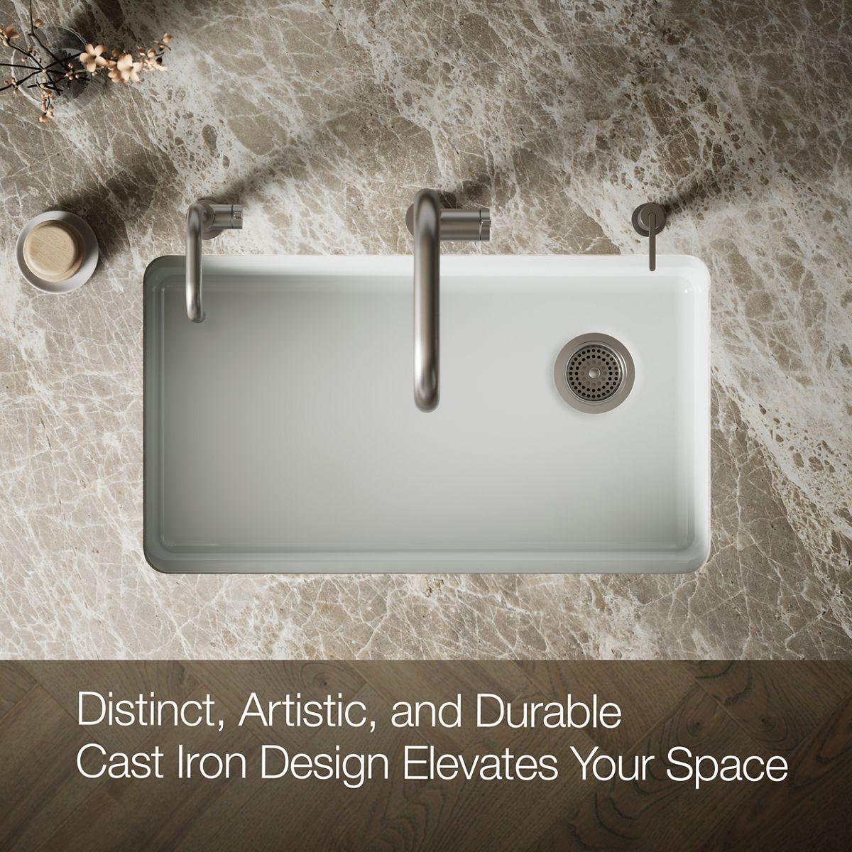 The understated beauty of this ADA-compliant Riverby sink makes it an elegant and versatile addition to the kitchen. A single, large bowl provides ample space to soak and wash cookware, while a sloped base to a single offset drain minimizes water pooling. Crafted from enameled cast iron, this sink resists chipping, cracking, or burning for years of beauty and reliable performance.