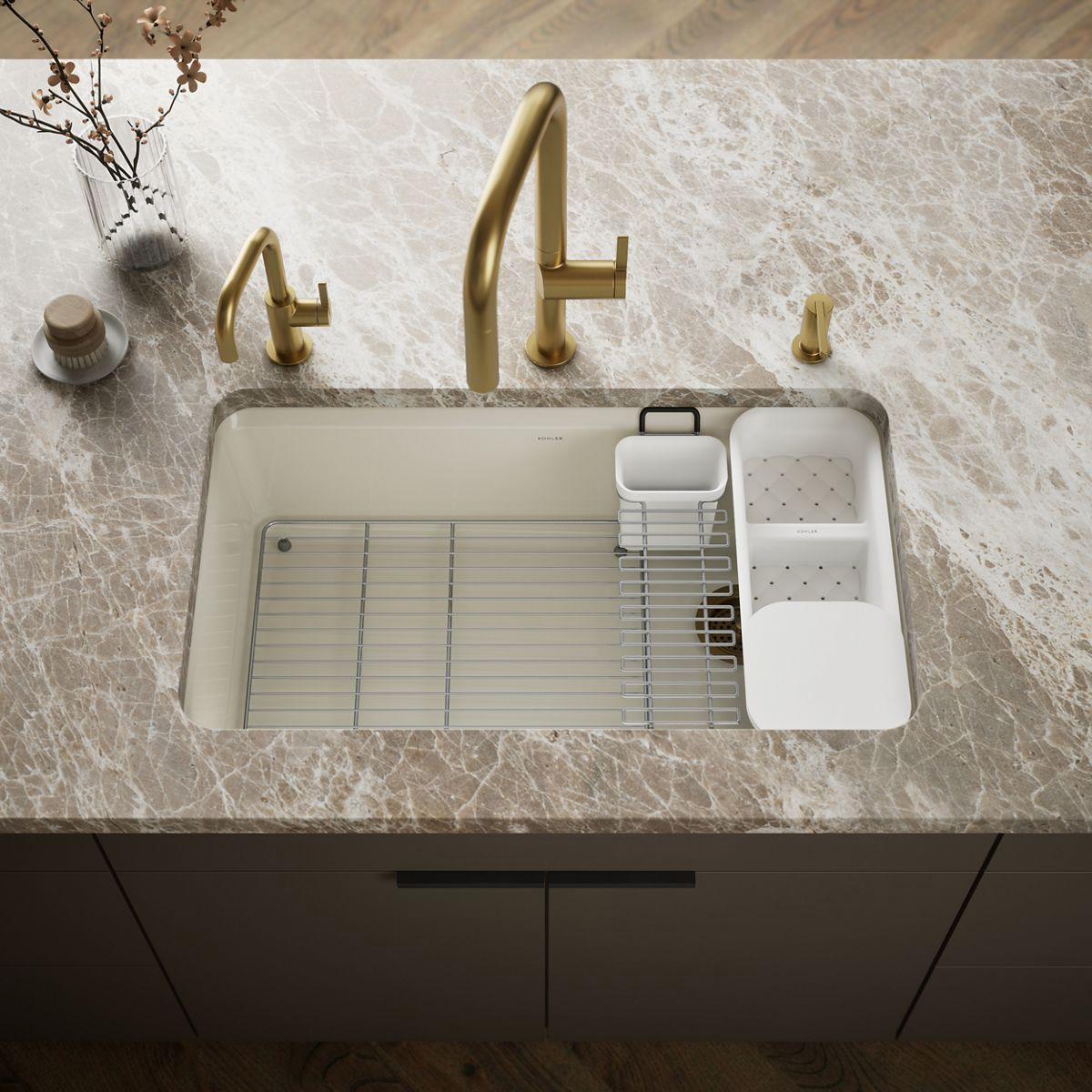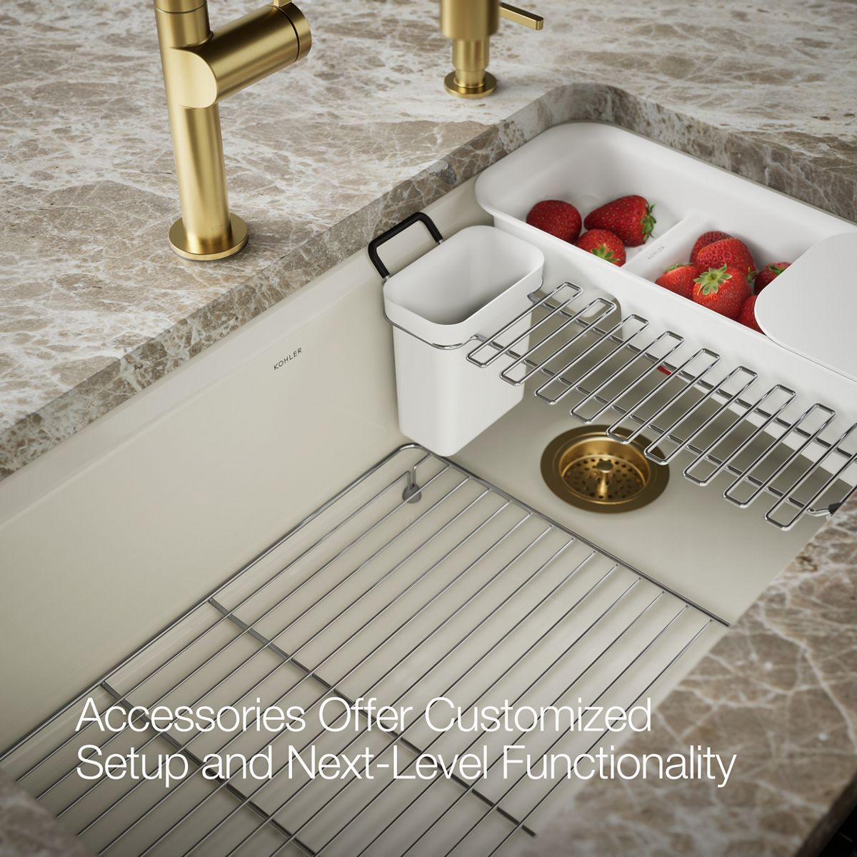 - Includes K-6194 utility rack with soaking cup, K-6239 colander with integral cutting board, and K-6237 left-hand bottom sink rack.