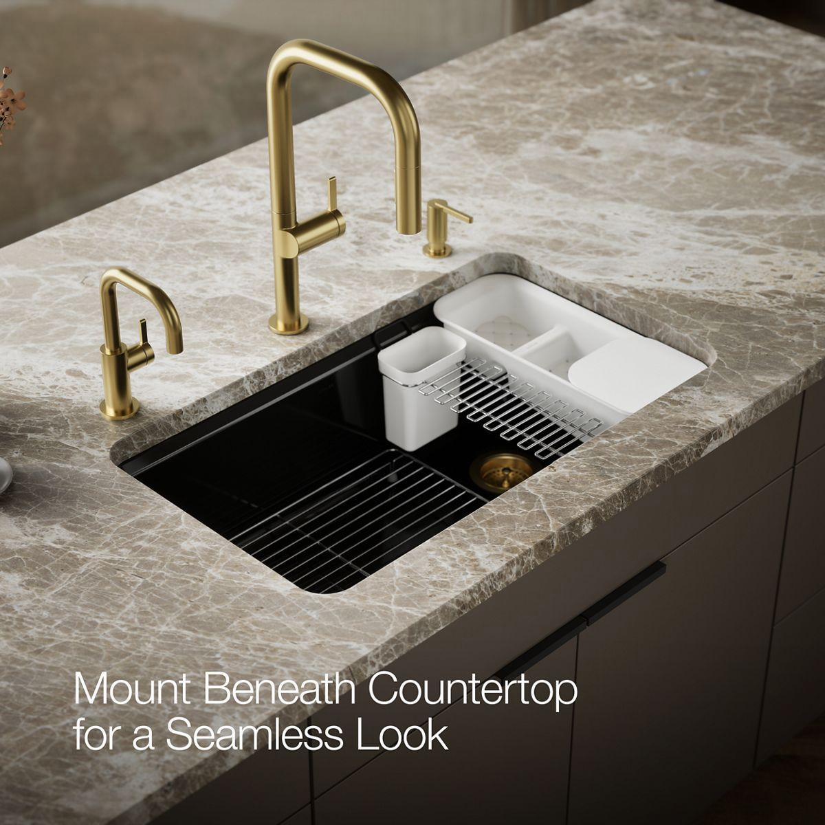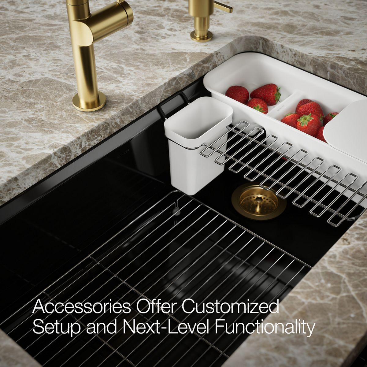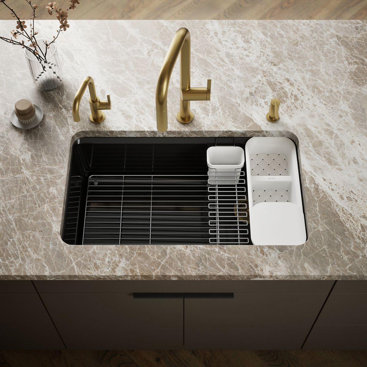 Riverby 33" 1 Bowl Undermount Workstation Kitchen Sink with Accessories - Black Black 5871-5UA3-7 Kohler