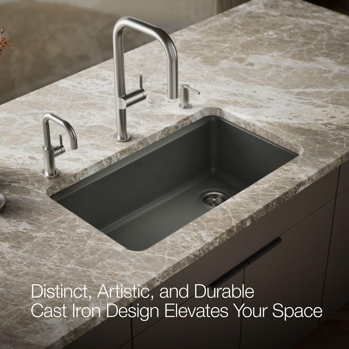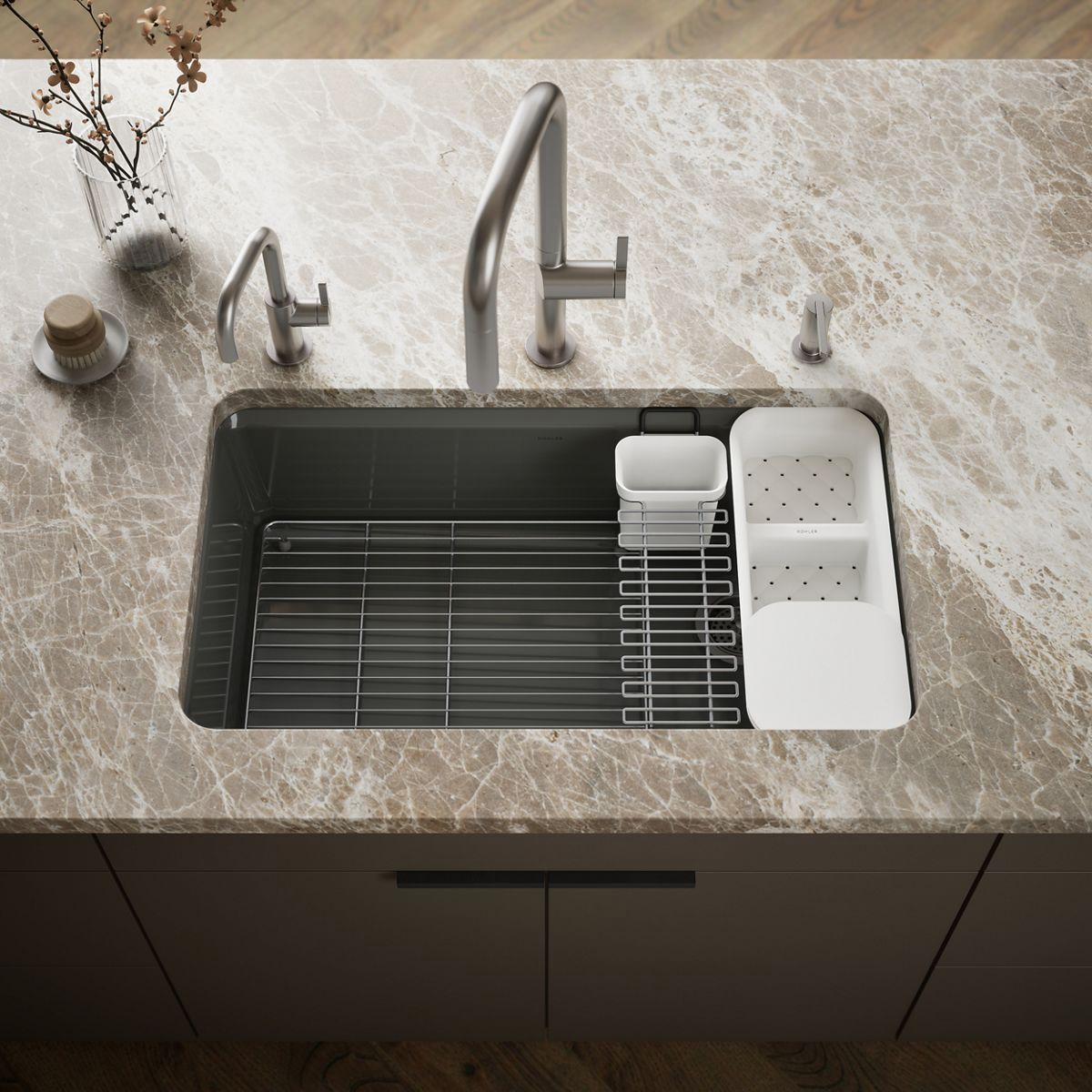 Riverby 33" 1 Bowl Undermount Workstation Kitchen Sink with Accessories - Thunder Grey 5871-5UA3-58 Kohler