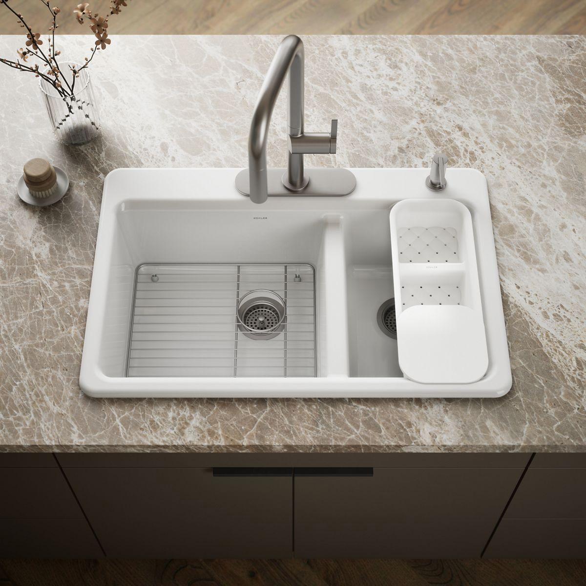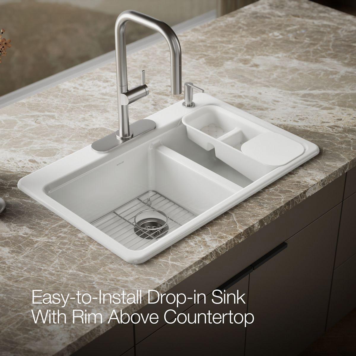 - Includes K-6239 colander with integral cutting board and K-9234 left-hand bottom sink rack.