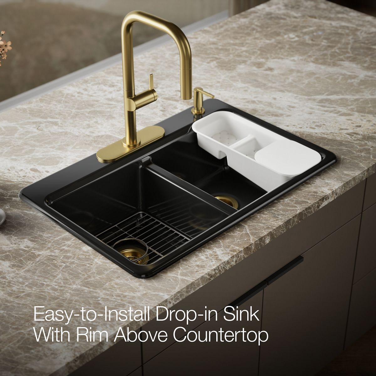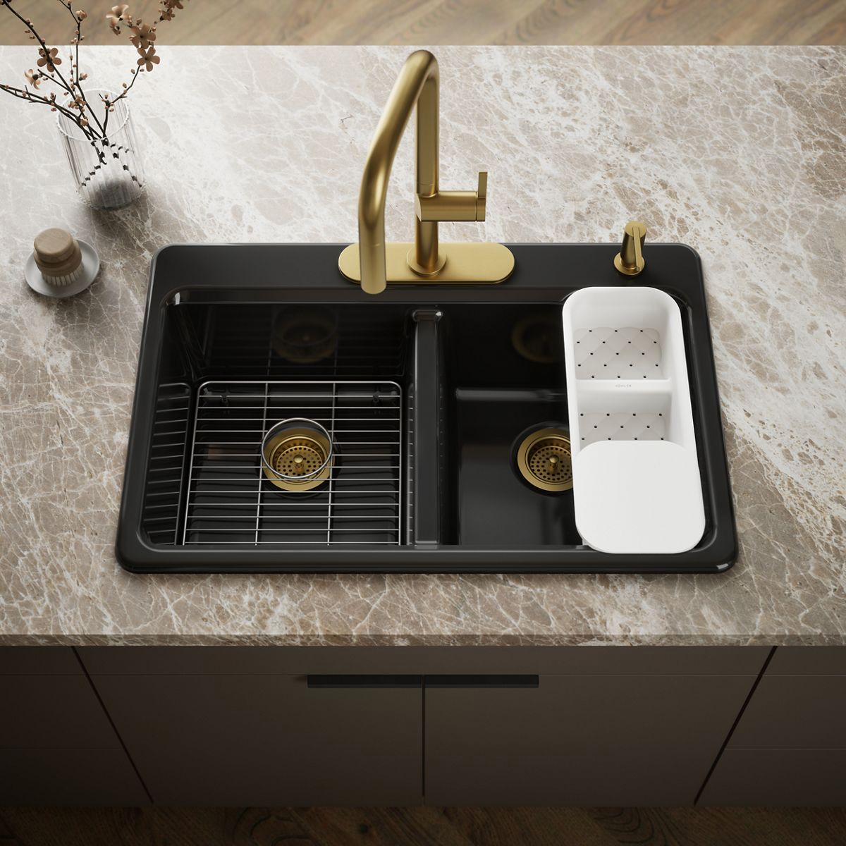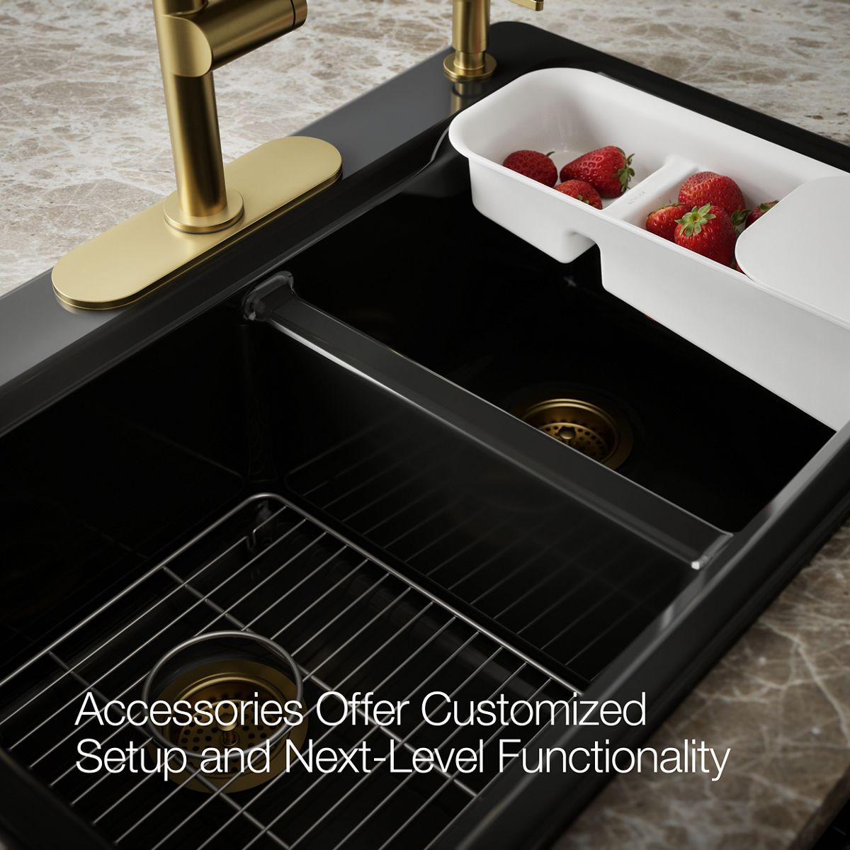 - Includes K-6239 colander with integral cutting board and K-9238 bottom sink rack.