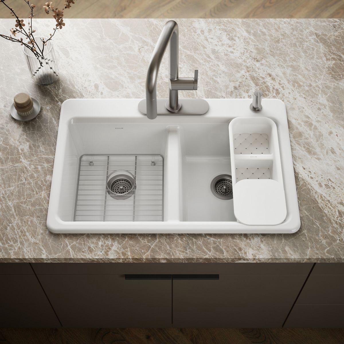 - Includes K-6239 colander with integral cutting board and K-9238 bottom sink rack.