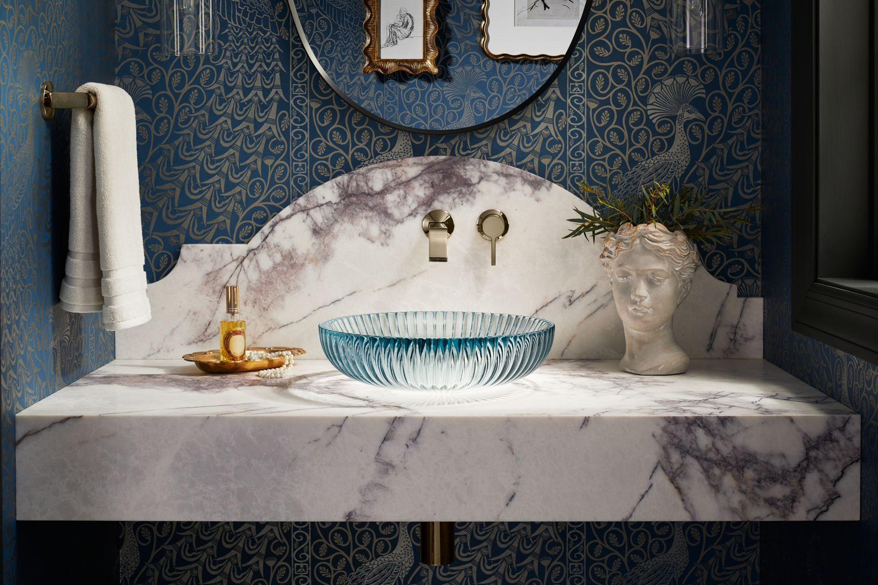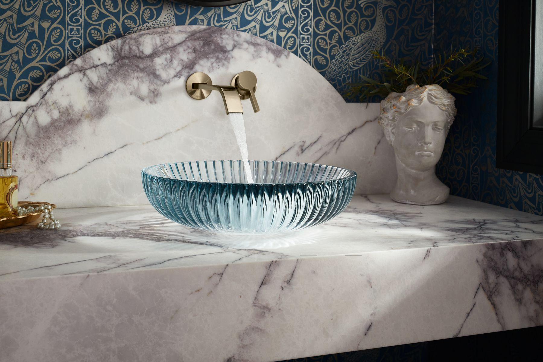 Like the coupe Champagne glass that inspired its design, the Salute vessel sink makes a statement—celebrating handcrafted artisan authenticity, elegance, and function in the bathroom space. Petite in size, this 15 vessel sink is ideal for small spaces, with an impression extending well beyond its stature. Vintage-style ribbing adorns the basin's exterior, creating unique radial reflections on the surrounding countertop, while a scalloped rim adds a glamorous finishing touch. Cheers to this unique and spectacular bathroom centerpiece.