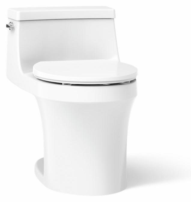 With sleek curves and a low-profile silhouette, the San Souci one-piece toilet makes a strong design statement. A compact tank curves seamlessly into a round-front bowl for a space-saving profile. A 1.28-gallon flush provides significant water savings of up to 16,500 gallons per year, compared to a 3.5-gallon toilet, without sacrificing performance. This toilet comes with a soft-close seat featuring innovative technology that prevents the seat from slamming and simplifies both cleaning and installation.