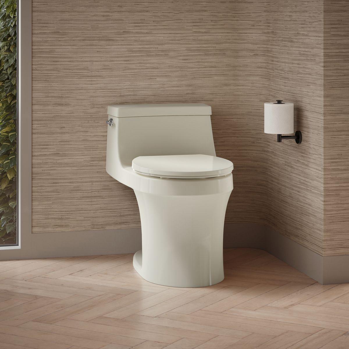 With sleek curves and a low-profile silhouette, the San Souci one-piece toilet makes a strong design statement. A compact tank curves seamlessly into a round-front bowl for a space-saving profile. A 1.28-gallon flush provides significant water savings of up to 16,500 gallons per year, compared to a 3.5-gallon toilet, without sacrificing performance. This toilet comes with a soft-close seat featuring innovative technology that prevents the seat from slamming and simplifies both cleaning and installation.