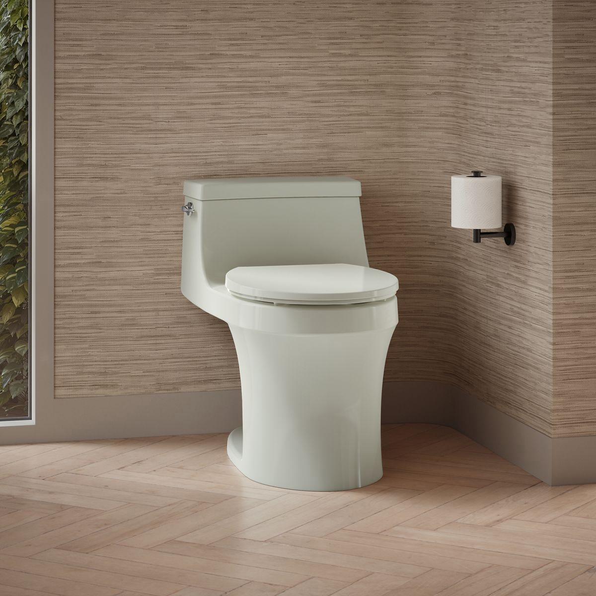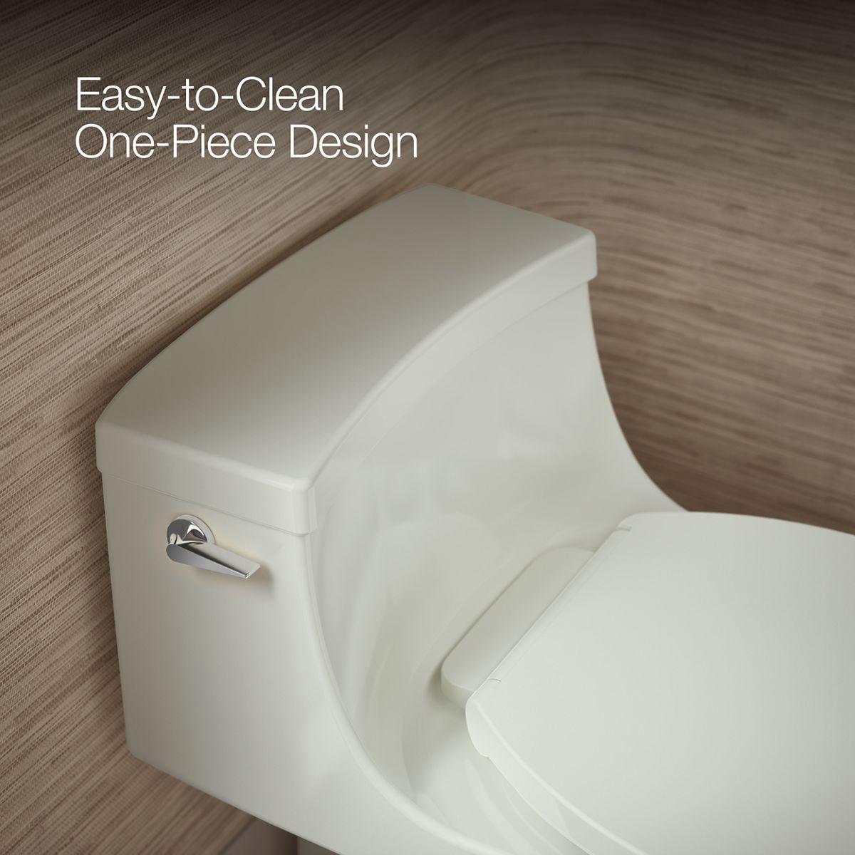 With sleek curves and a low-profile silhouette, the San Souci one-piece toilet makes a strong design statement. A compact tank curves seamlessly into a round-front bowl for a space-saving profile. A 1.28-gallon flush provides significant water savings of up to 16,500 gallons per year, compared to a 3.5-gallon toilet, without sacrificing performance. This toilet comes with a soft-close seat featuring innovative technology that prevents the seat from slamming and simplifies both cleaning and installation.