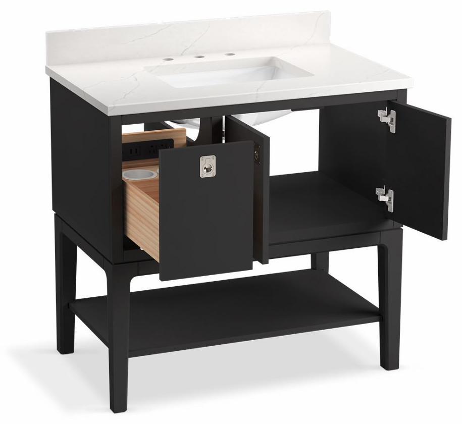 - Finish-matched cabinet interior offers generous clearance for plumbing