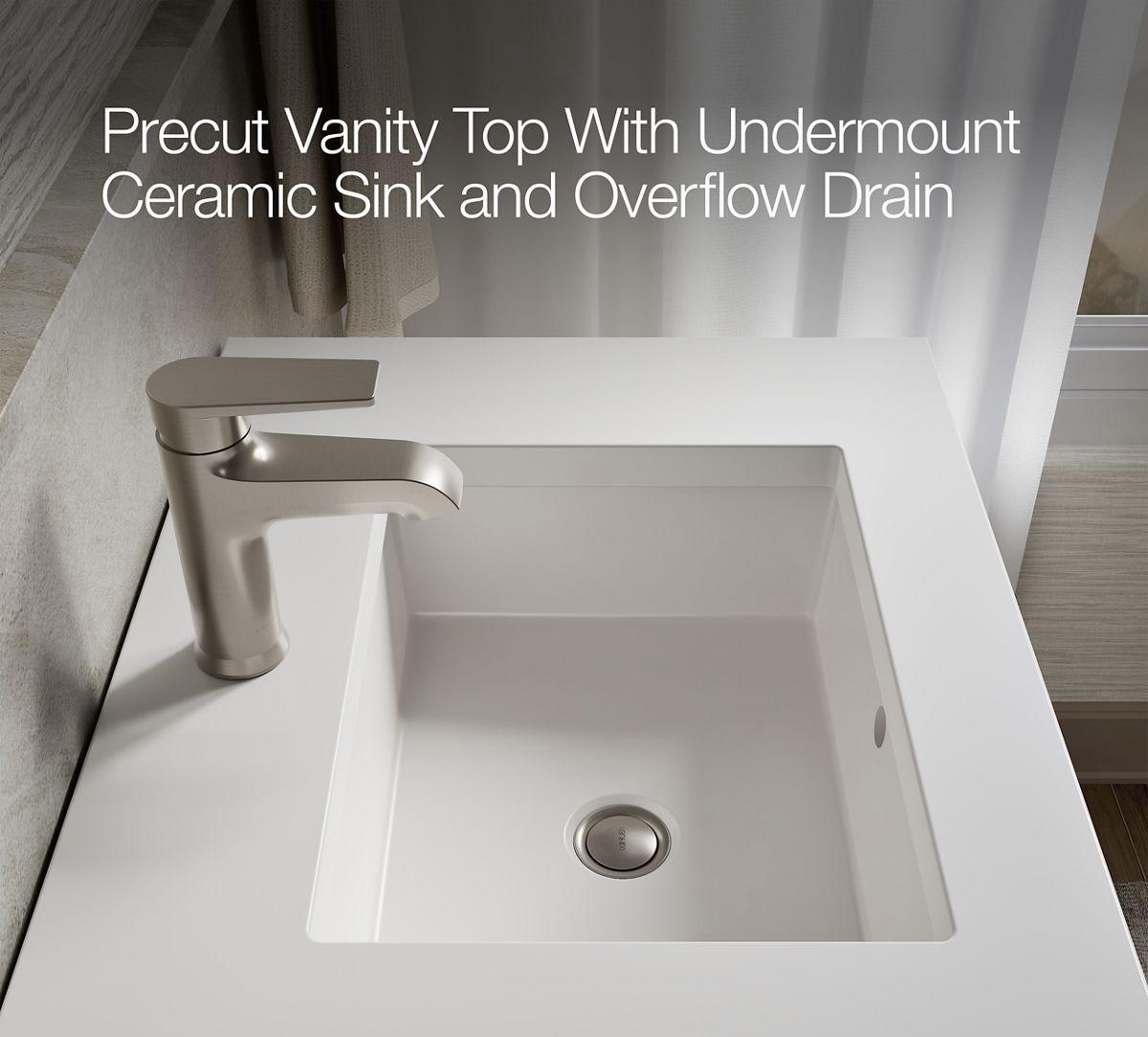 • Pure White (PWH) quartz vanity top adds beauty and long-lasting durability