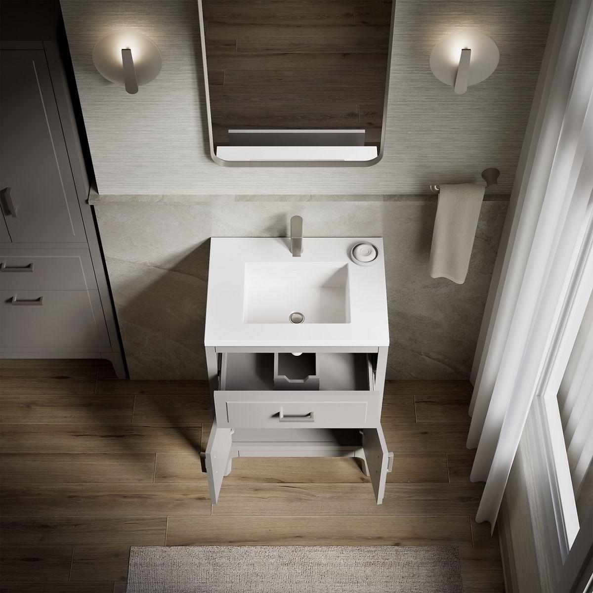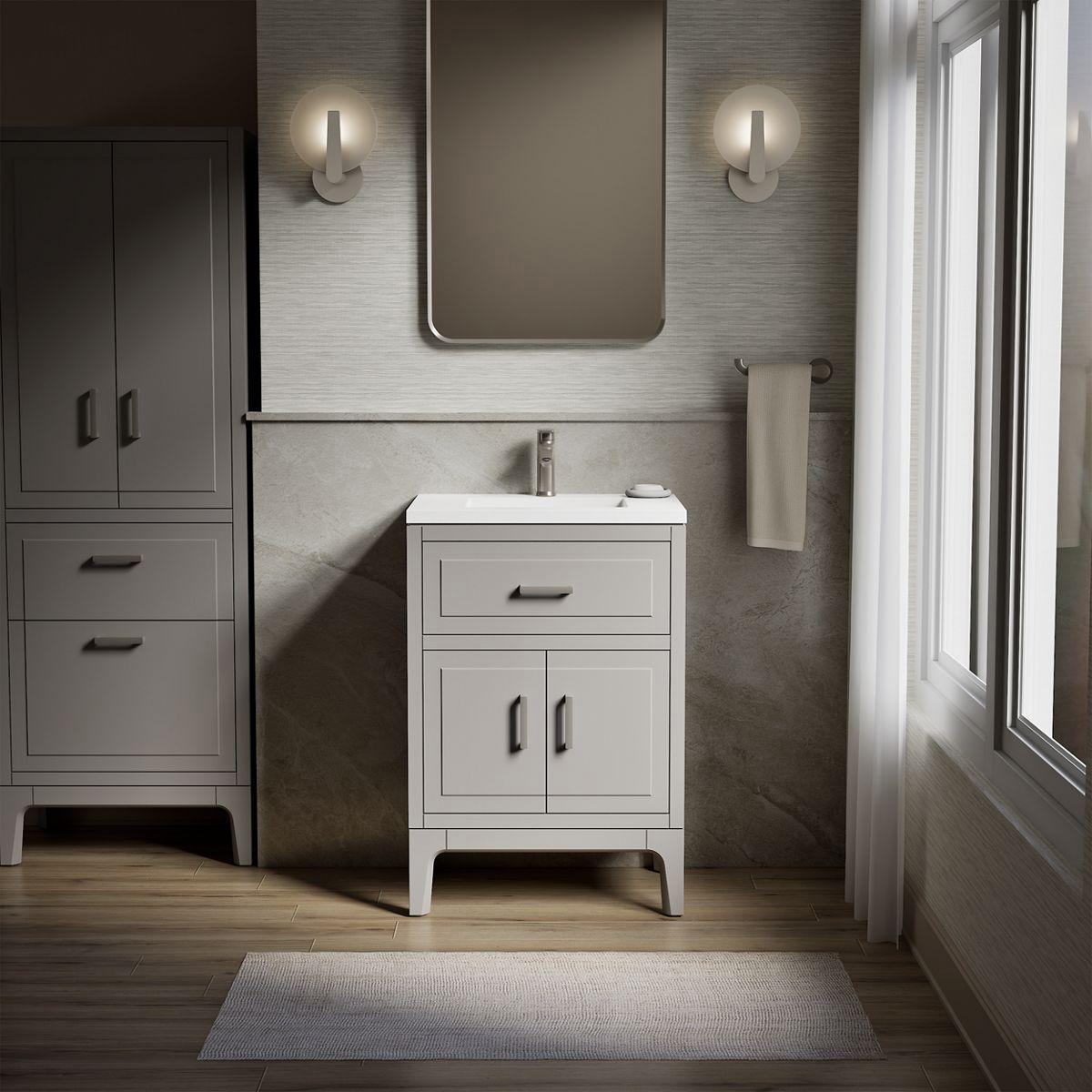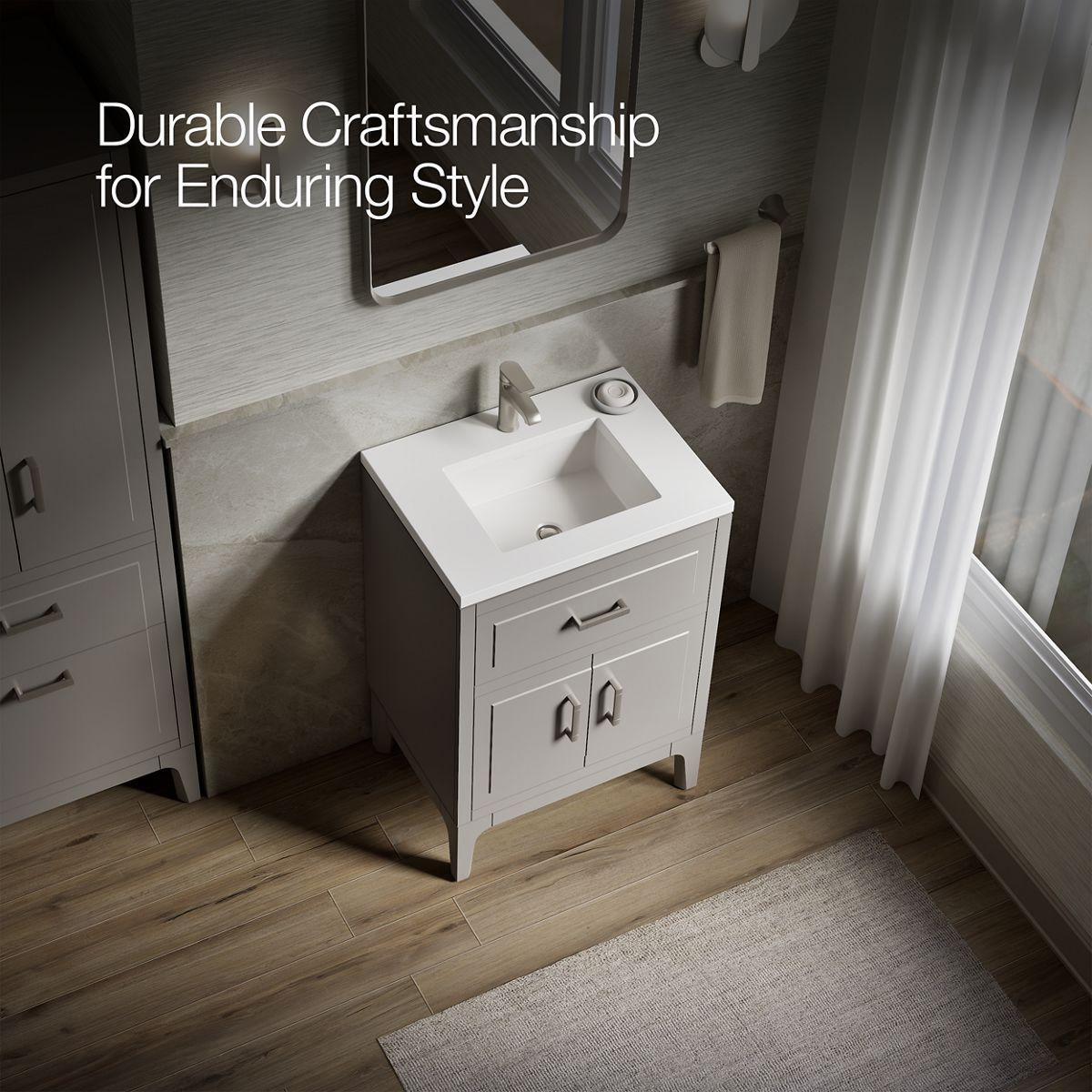 Seer 24" Bathroom Vanity with Sink and 1-Hole Quartz Top - Mohair Grey 33551-ASB-1WT Kohler