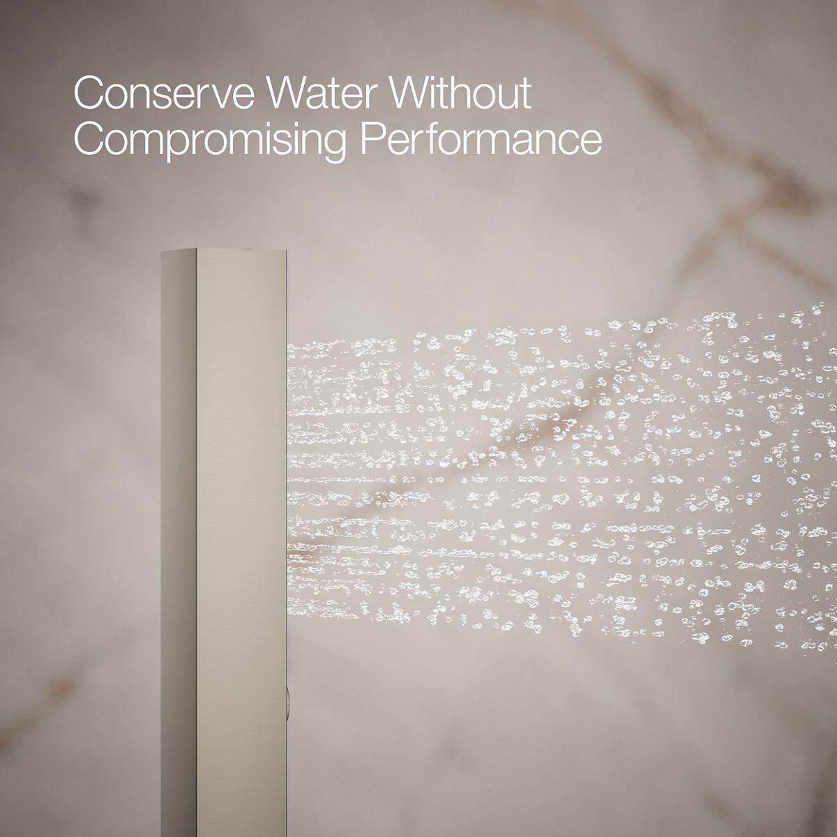 Your perfect shower spray, delivered at the touch of a button. The sleek, contemporary Shift + handshower includes a push-button for effortless transition between full-coverage and targeted massage sprays, all enhanced with Katalyst technology for a completely indulgent showering experience. By infusing two liters of air per minute, Katalyst produces a powerful, voluptuous spray that clings to the body with larger, fuller water drops.