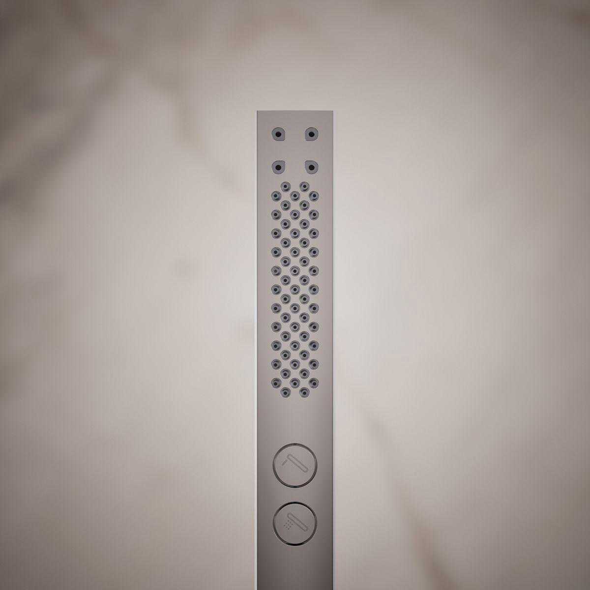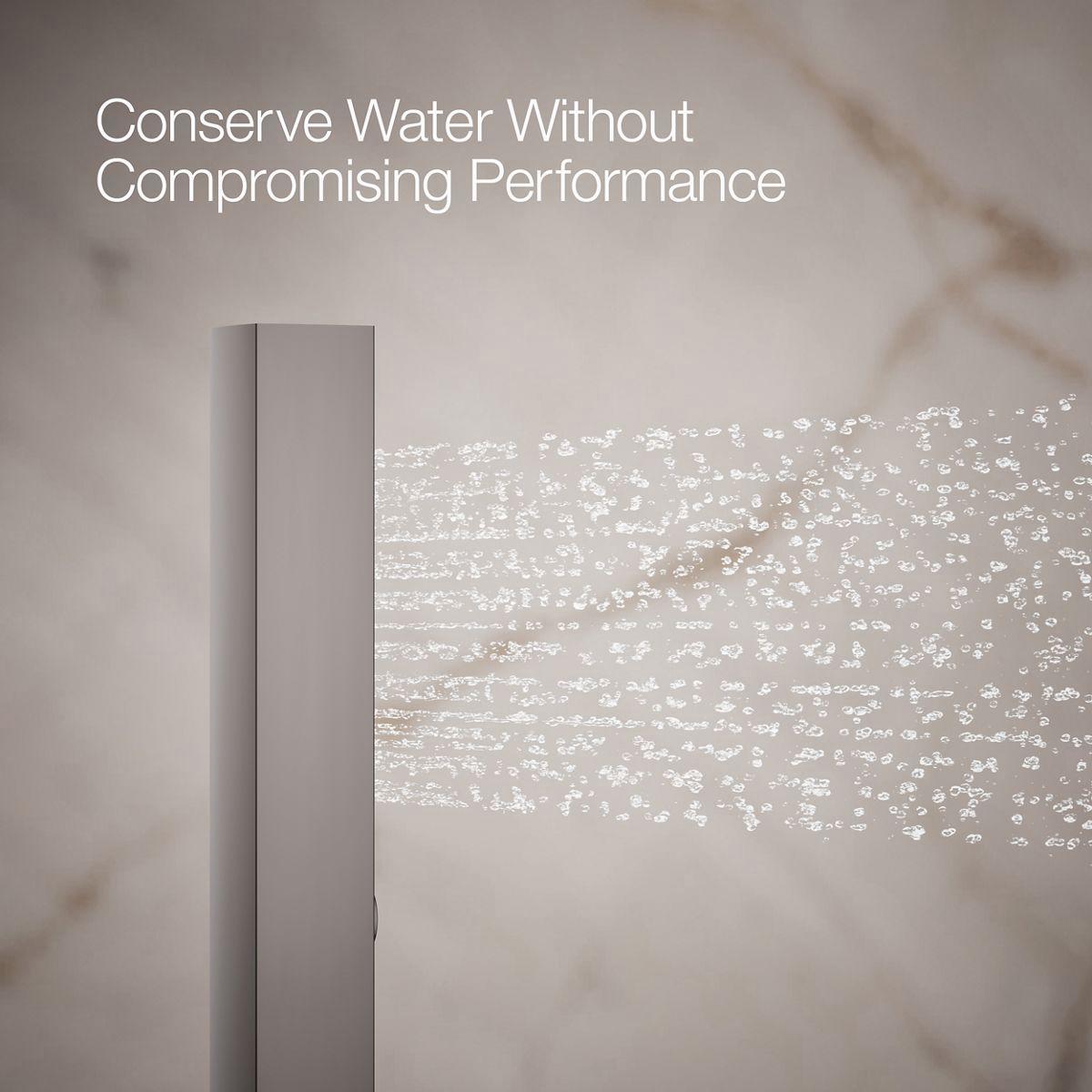 Your perfect shower spray, delivered at the touch of a button. The sleek, contemporary Shift + handshower includes a push-button for effortless transition between full-coverage and targeted massage sprays, all enhanced with Katalyst technology for a completely indulgent showering experience. By infusing two liters of air per minute, Katalyst produces a powerful, voluptuous spray that clings to the body with larger, fuller water drops.