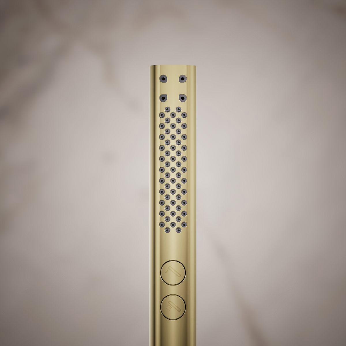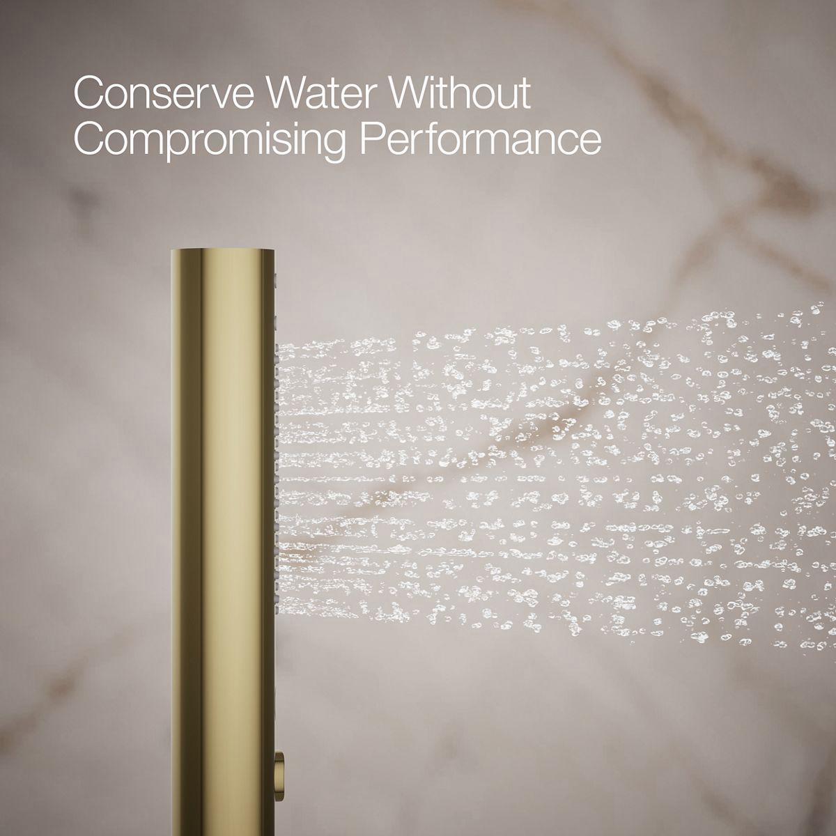 Your perfect shower spray, delivered at the touch of a button. The sleek, contemporary Shift+ handshower includes a push-button for effortless transition between full-coverage and targeted massage sprays, all enhanced with Katalyst technology for a completely indulgent showering experience. By infusing two liters of air per minute, Katalyst produces a powerful, voluptuous spray that clings to the body with larger, fuller water drops.