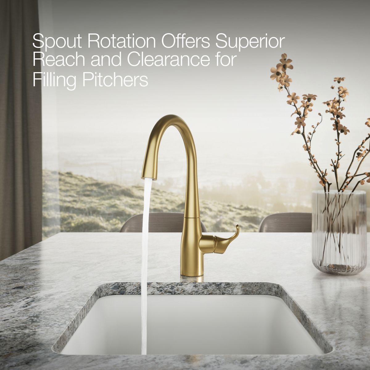 - High-arch swing spout with 180° rotation offers superior clearance for filling pitchers, chilling bottles and cleanup