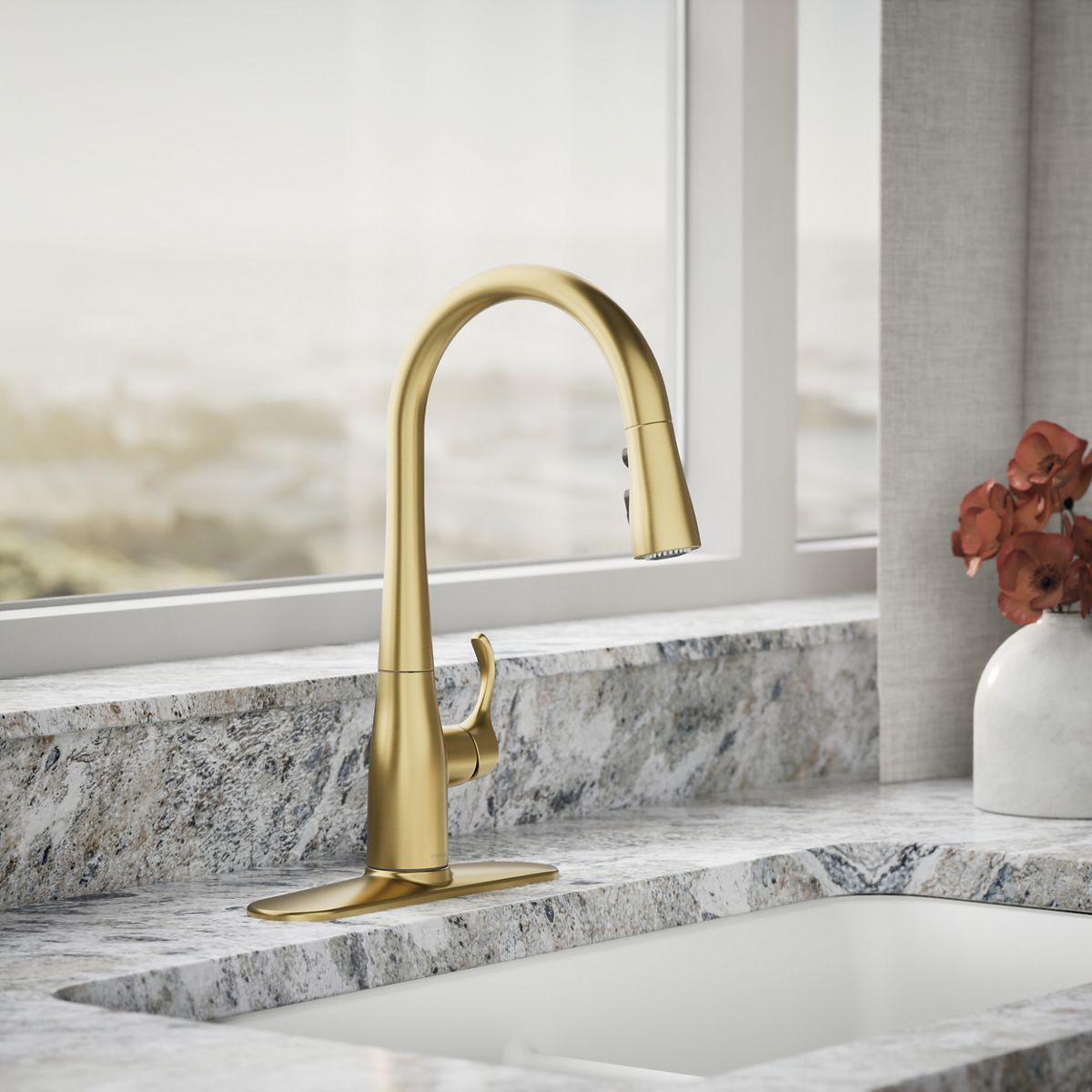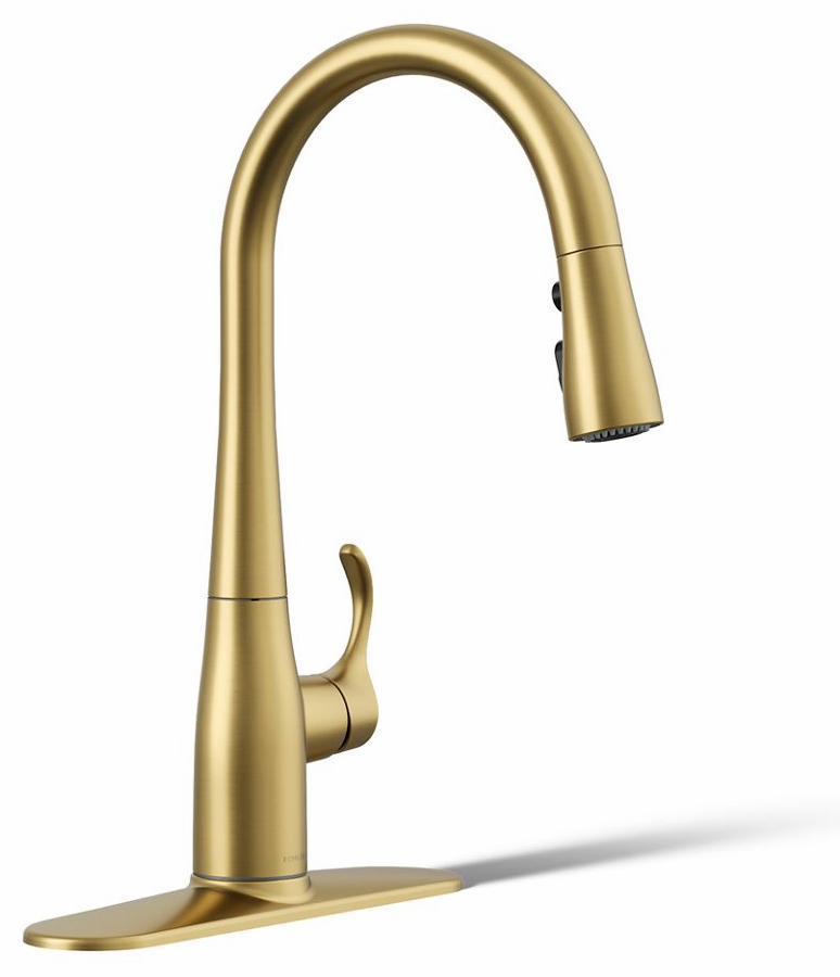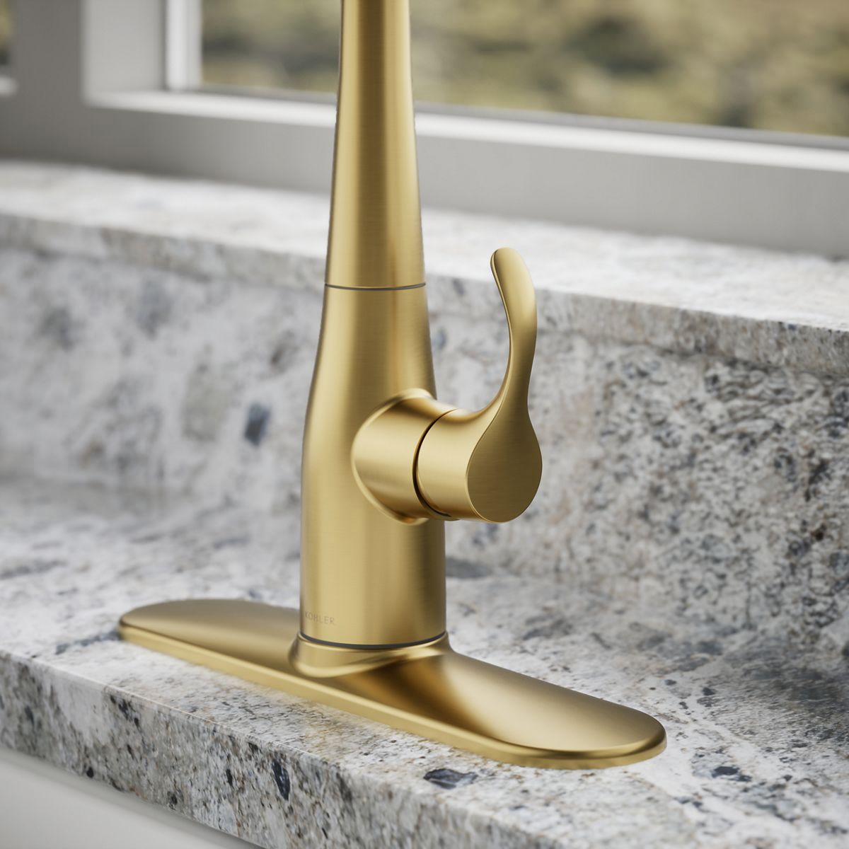 An innovative fit for a variety of kitchens and tasks, this Simplice bar or prep sink faucet combines an elegant, universal design with exceptional ergonomics and functionality. The high-arch swing spout rotates 360 degrees, while the smoothly maneuvering sprayhead pulls down into the sink for up-close tasks, or out of the sink to fill pots. Sculpted buttons on the sprayhead ensure simple operation even with wet, soapy hands. Sweep spray creates a wide, forceful blade of water for superior cleaning. Kohler's docking system, DockNetik, secures the pull-down sprayhead to the spout.