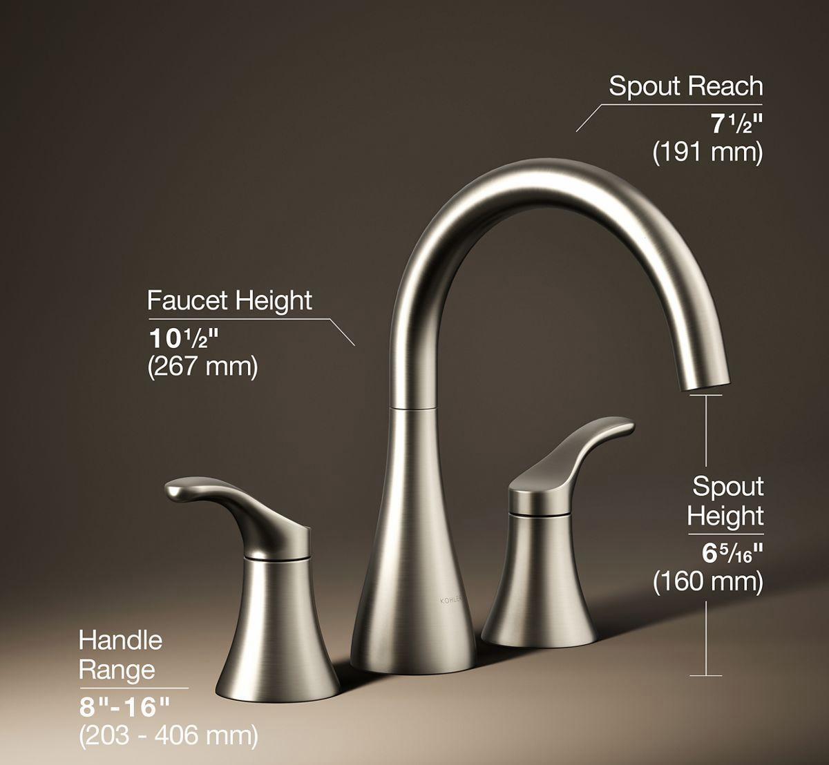- 7-1/2 (191 mm) gooseneck nondiverter spout with slip-fit connection