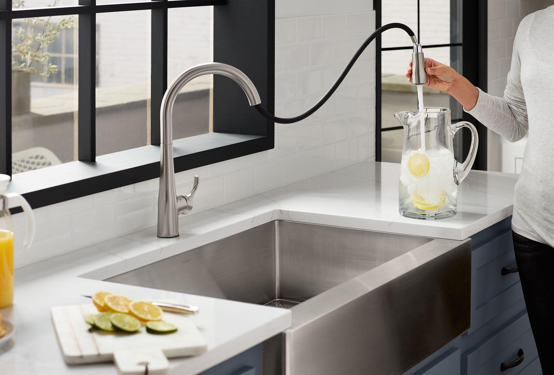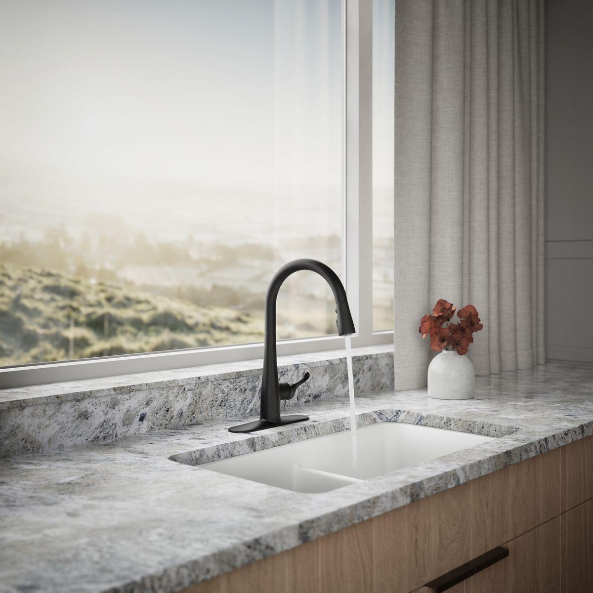 With a state-of-the-art sensor under the spout, the Simplice touchless faucet allows you to speed through cooking and cleanup tasks and enjoy a cleaner, more hygienic kitchen environment. Intuitive Response technology is in tune with your every move: a simple wave of your hand—or an object such as a pan—turns it on or off. The sensor is precision-designed to prevent false activations when you're working in the sink area. Sweep spray is a forceful blade of water for easier cleaning, while Boost delivers an increased flow ideal for filling pots and pitchers.