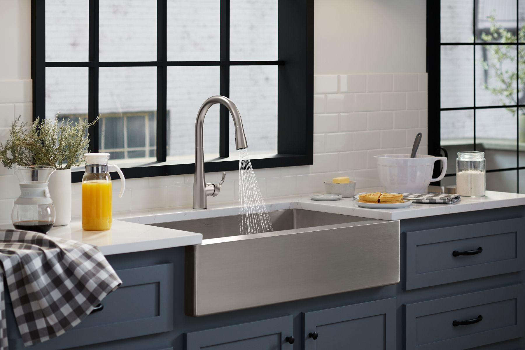 With a state-of-the-art sensor under the spout, the Simplice touchless faucet allows you to speed through cooking and cleanup tasks and enjoy a cleaner, more hygienic kitchen environment. Intuitive Response technology is in tune with your every move: a simple wave of your hand—or an object such as a pan—turns it on or off. The sensor is precision-designed to prevent false activations when you're working in the sink area. Sweep spray is a forceful blade of water for easier cleaning, while Boost delivers an increased flow ideal for filling pots and pitchers.