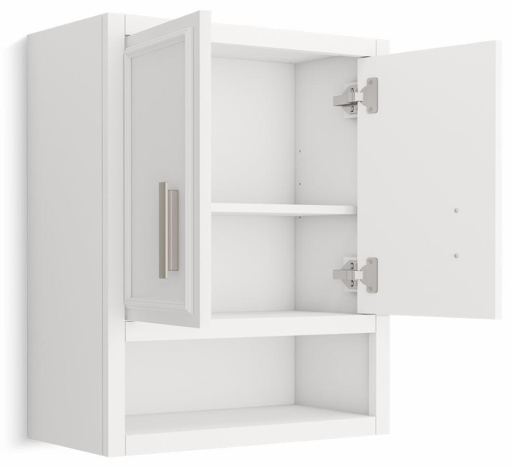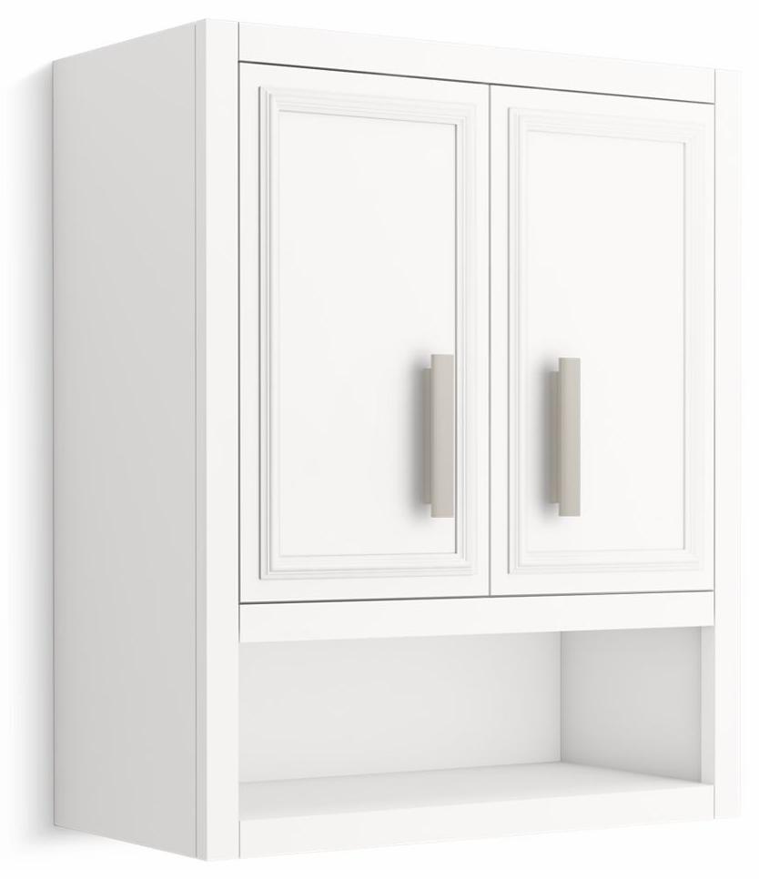 Elegant and mysterious, Southerk bathroom cabinetry evokes contemporary class with a nod to the traditional for an aesthetic that suits any style. Frame-like molding on door-front panels are further adorned with elongated decorative handles. Make your everyday storage uniquely yours with choice of color. Wall cabinet and Vibrant Brushed Nickel hardware are included. Additional hardware finishes are also available.