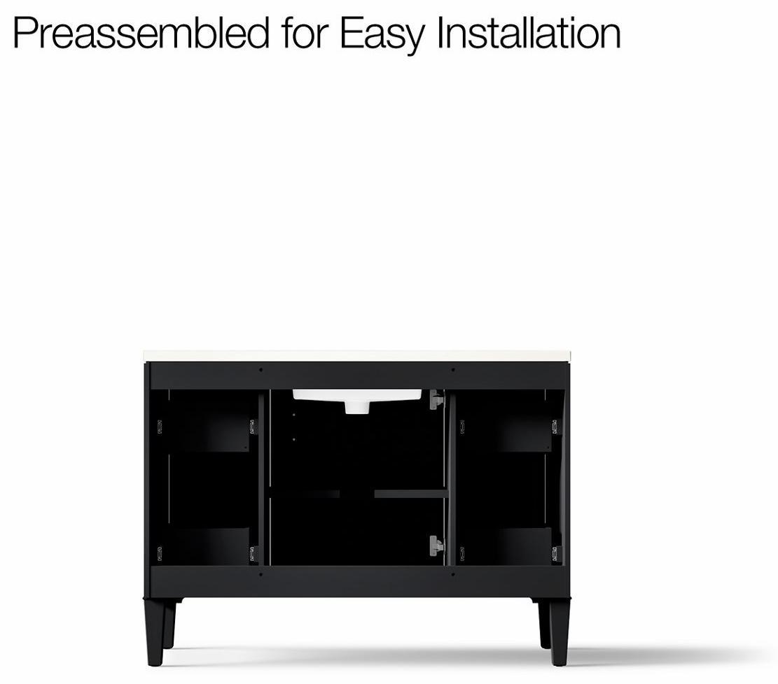 - Finish-matched cabinet interior offers generous clearance for plumbing.