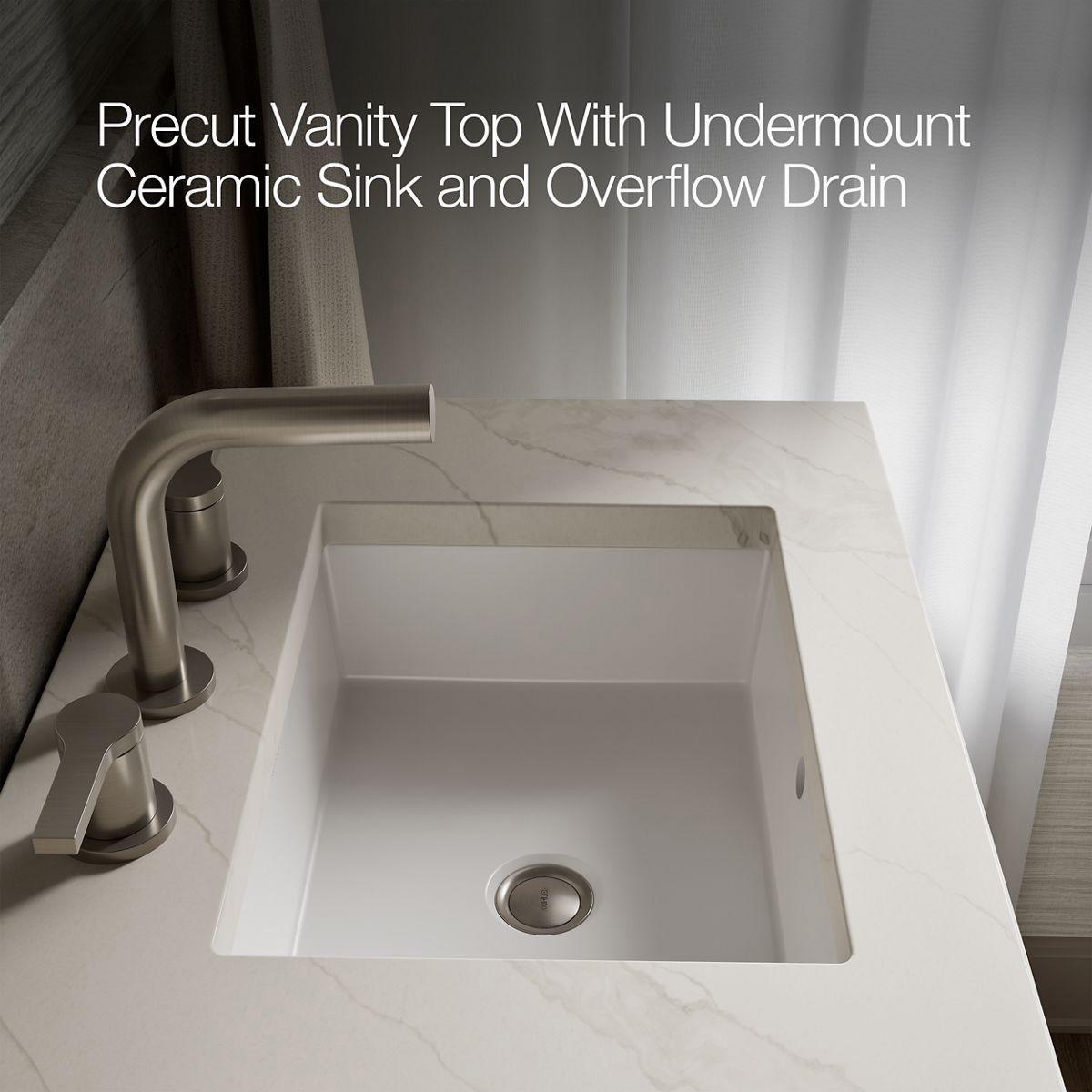 - Calacatta (CBB) quartz vanity top adds beauty and long-lasting durability