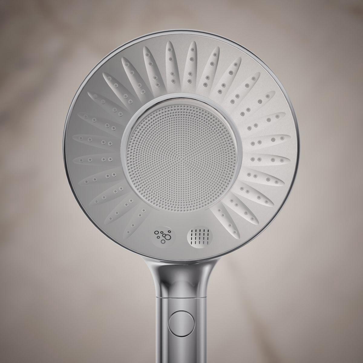 The SpaViva handshower and all-in-one cleansing device is the ideal power pair to revolutionize your in-shower self-care routine. The handshower features the pore-penetrating power of MicroBubble spray while also offering full-coverage Katalyst spray that retains more heat with each drop. The all-in-one cleansing device magnetically docks into the center of the handshower and features a range of versatile attachments, including a facial brush, body brush, body scrubber, and body massager. At full charge it runs for 90 minutes and rotates at a selection of three speeds. Extend the handle with the push of a button to effectively cleanse hard-to-reach areas and rejuvenate your skin from head to toe.