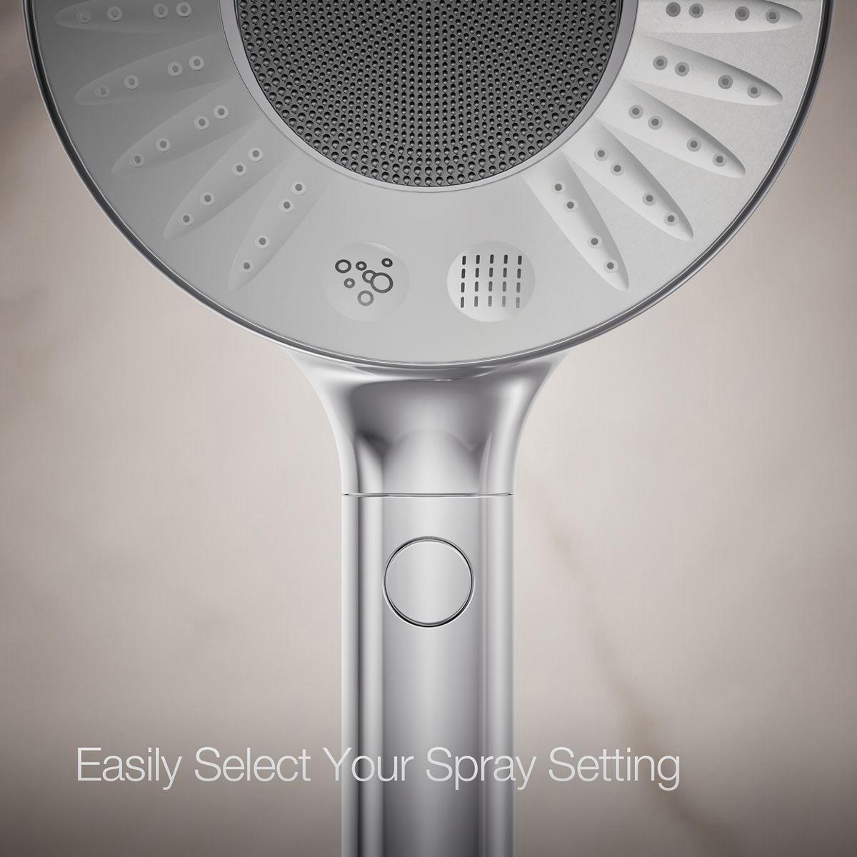 - Multifunction handshower with advanced spray engine provides two spray experiences: full coverage with Katalyst and MicroBubble