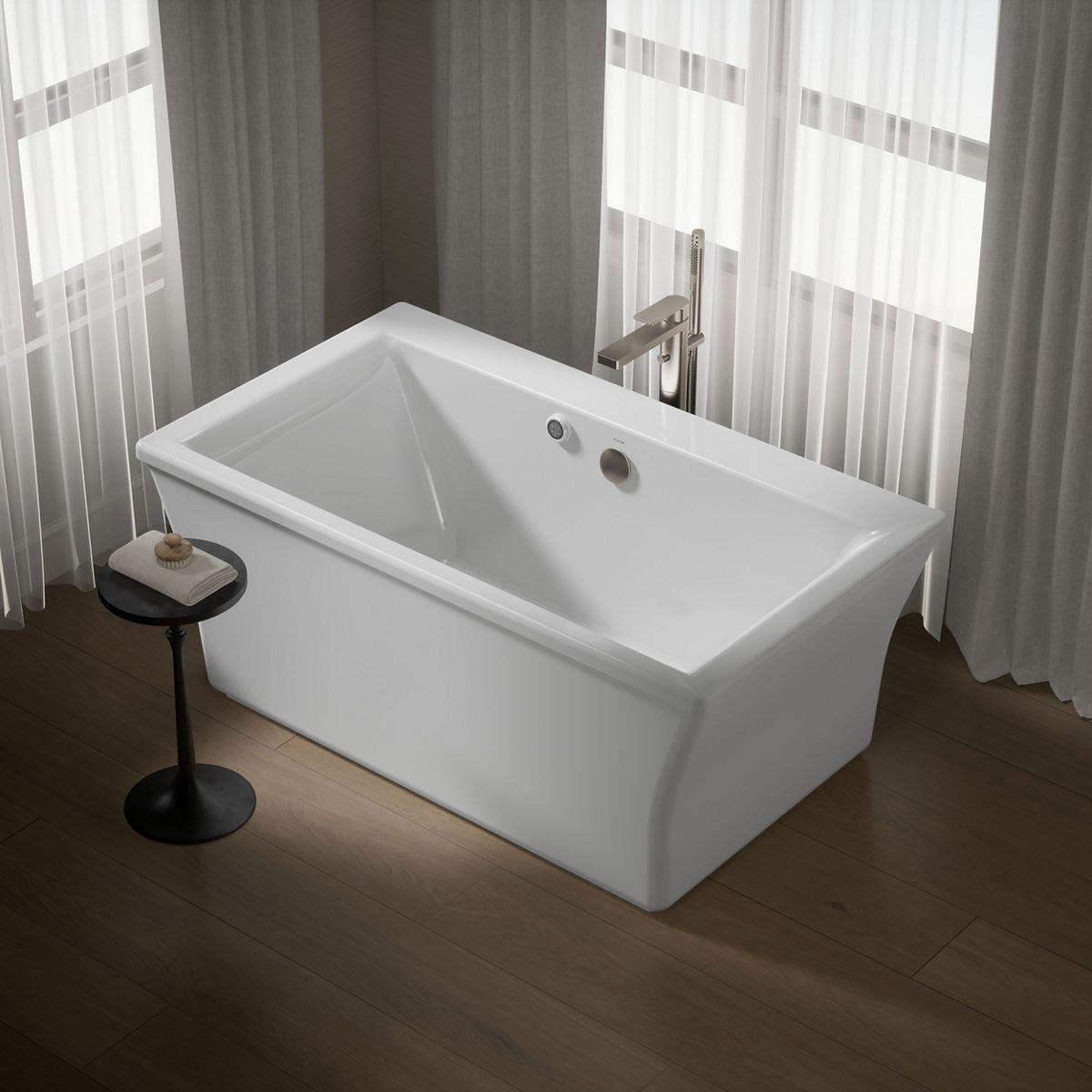 Create a luxurious centerpiece for your bathing area with the Stargaze freestanding bath. Made for deep soaking and relaxation, the ergonomic design provides lumbar support at both ends, so you can stretch out in full comfort as the Bask heated surface warms your back, shoulders, and neck. With its crisp, clean lines and fluted shroud, this versatile bath complements a wide range of bathroom styles and offers easy three-step installation.