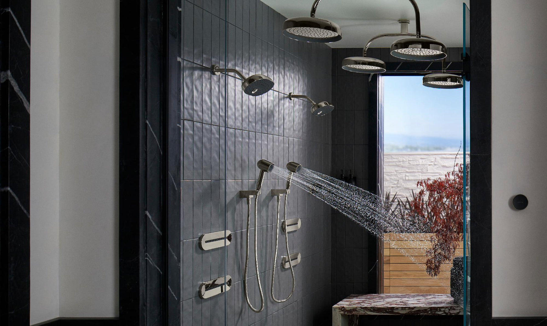 - Compatible with two single-function rainheads or a single-function rainhead and a wand handshower with hose (components sold separately)